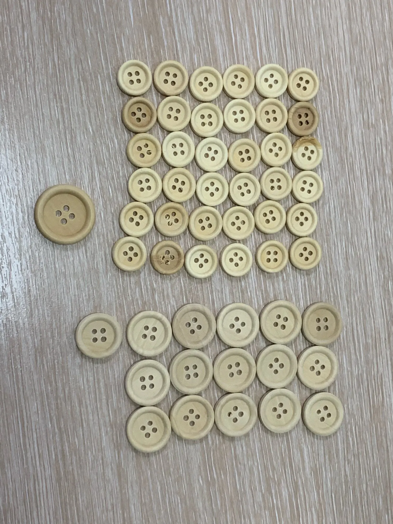 Botones de madera mezclados para costura, accesorios de costura de 4 agujeros, Color Natural, DIY, 50 Uds.