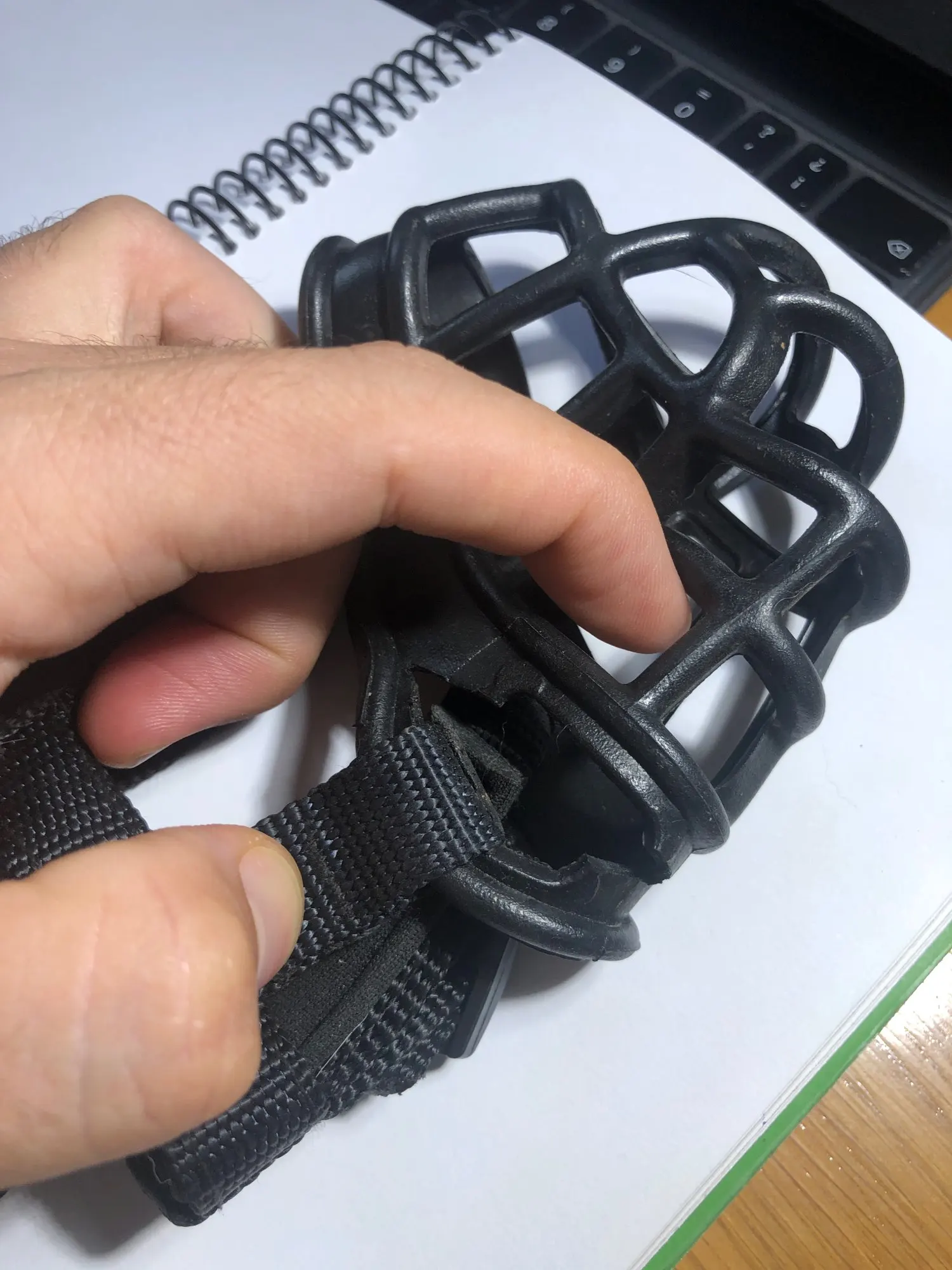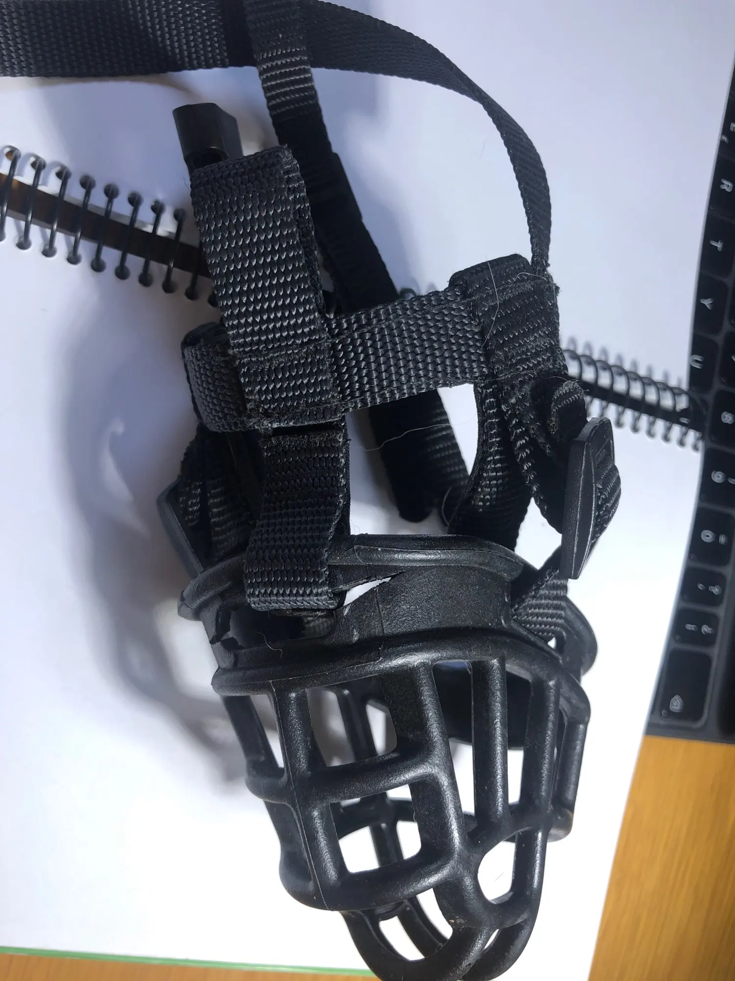 el bozal no se encuentra armado, no sabía cómo hacerlo incluso hubo una ocasión que se le salió al perro , pero mirando las imágenes de la venta logré que no se volviera a salir del osico