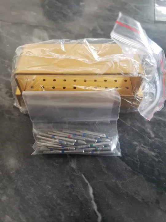 Broca de diamante para 30 Uds. Bloque de desinfección dorado para Blanqueamiento Dental de dientes de alta velocidad caja de aluminio para herramientas