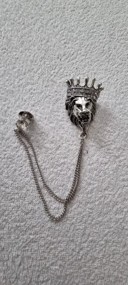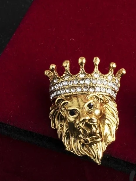 Broche Vintage de cabeza de león para hombre y mujer, Pin de cristal con corona para solapa, Pin de traje para cuello de camisas, broches, accesorios de joyería