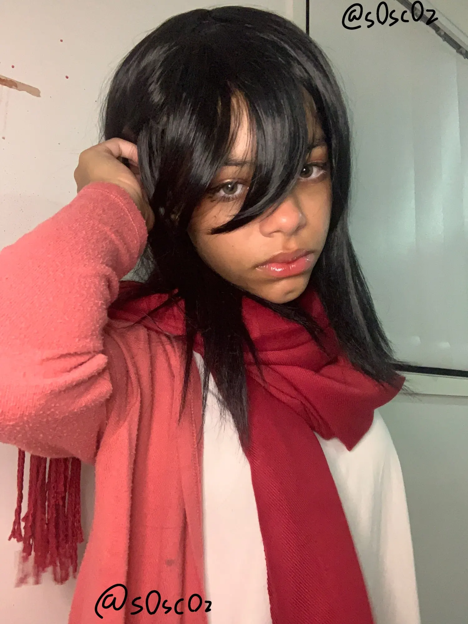 Bufanda de Cosplay de Attack on Titan Mikasa Ackerman, Kyojin de Anime japonés no Shingeki, bufandas casuales de Diario Rojo que combinan con todo