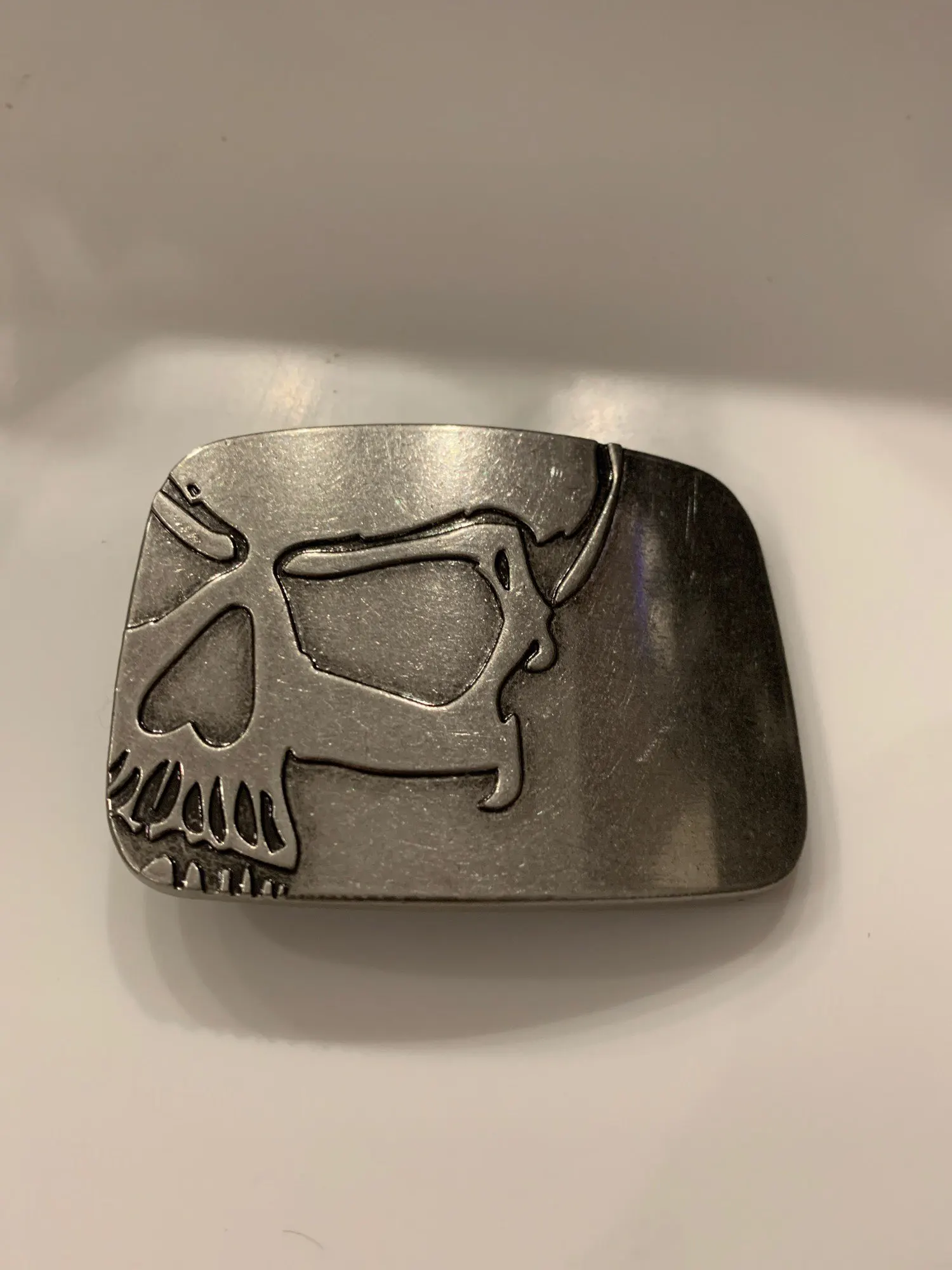 Bullzine-hebilla de cinturón de calavera pesada, con acabado en plata antigua con cinturón de PU y cierre de conexión FP-03698