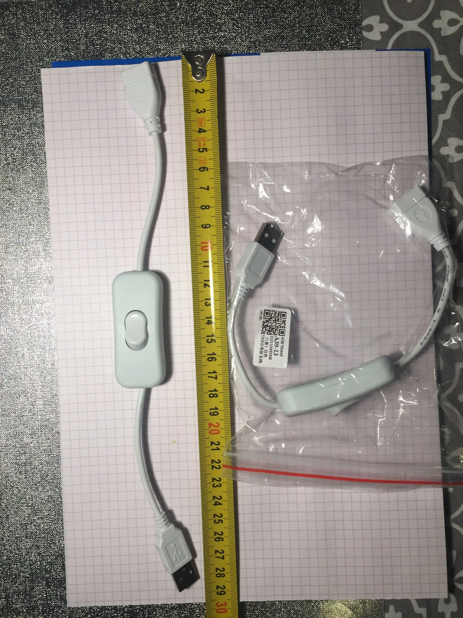 Cable USB de 28cm, extensor de extensión macho A hembra, color blanco con interruptor de encendido y apagado, 1 unidad