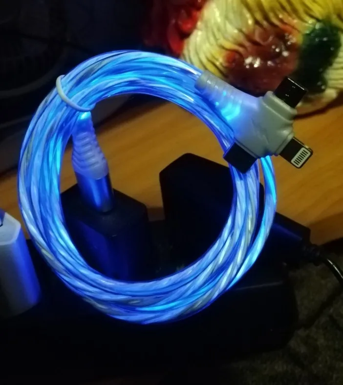 Cable usb de iluminación luminosa 3 en 1 para Samsung, cable de carga LED 2 en 1, Micro USB tipo C de 8 pines para iPhone, Huawei y Xiaomi