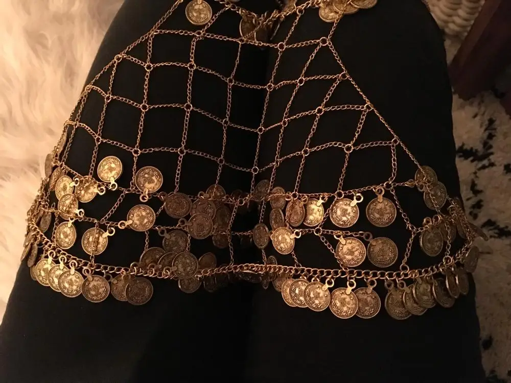 Cadena de cintura de color dorado y turco bohemio para mujer, sujetador con flecos, joyería de cadenas para el cuerpo, Gargantilla gitana, collar llamativo