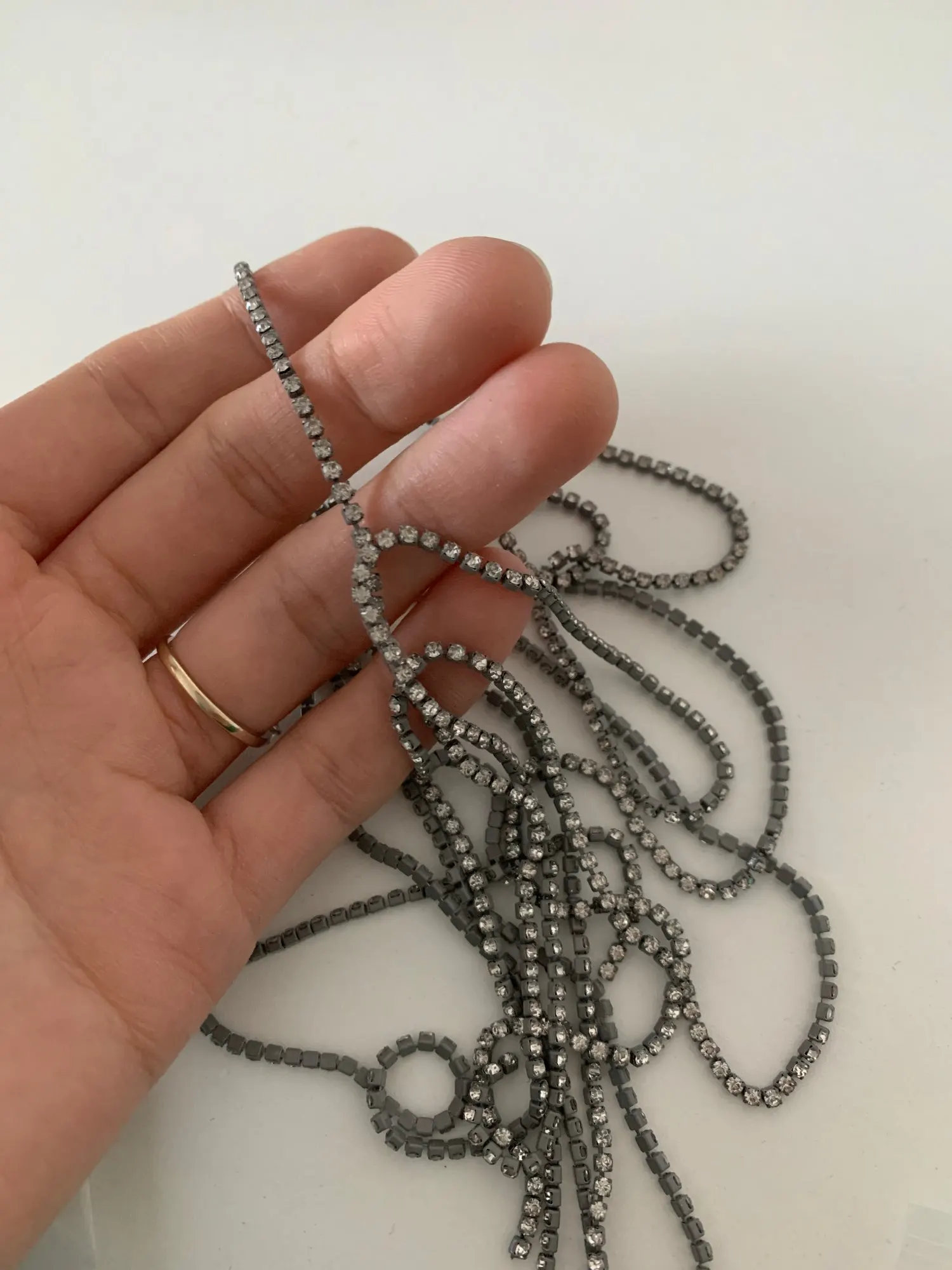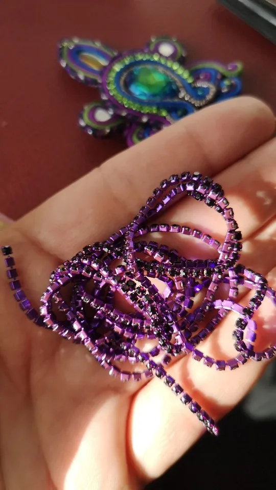 Cadena de diamante de cristal con fondo colorido para coser en la taza de piedra, cadena de Gule sobre adorno de diamantes de imitación, accesorios DIY