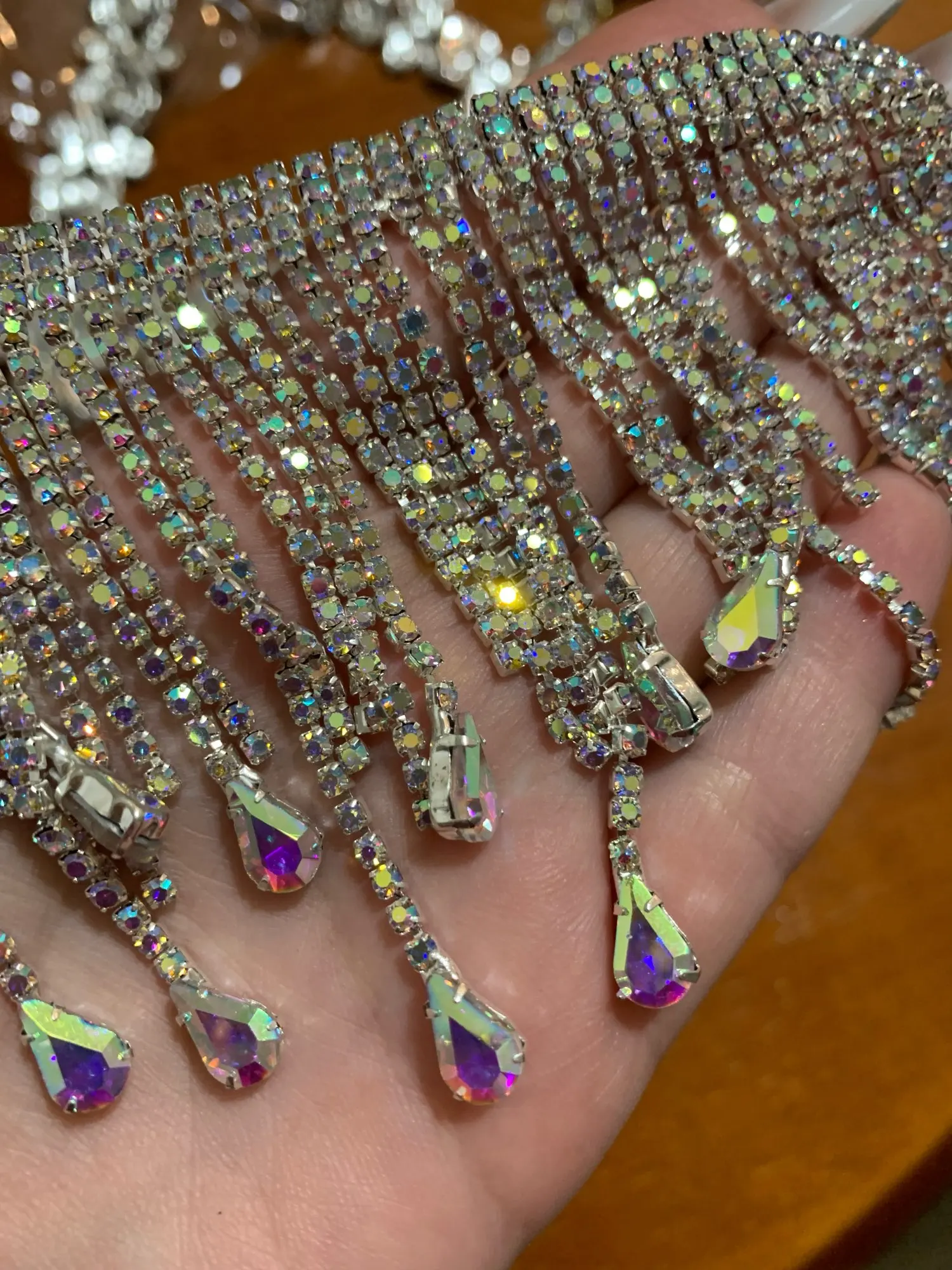 Cadena de flecos AB con diamantes de imitación, borla de gotas de agua, adorno para coser en cristal, decoración ML124, gran oferta