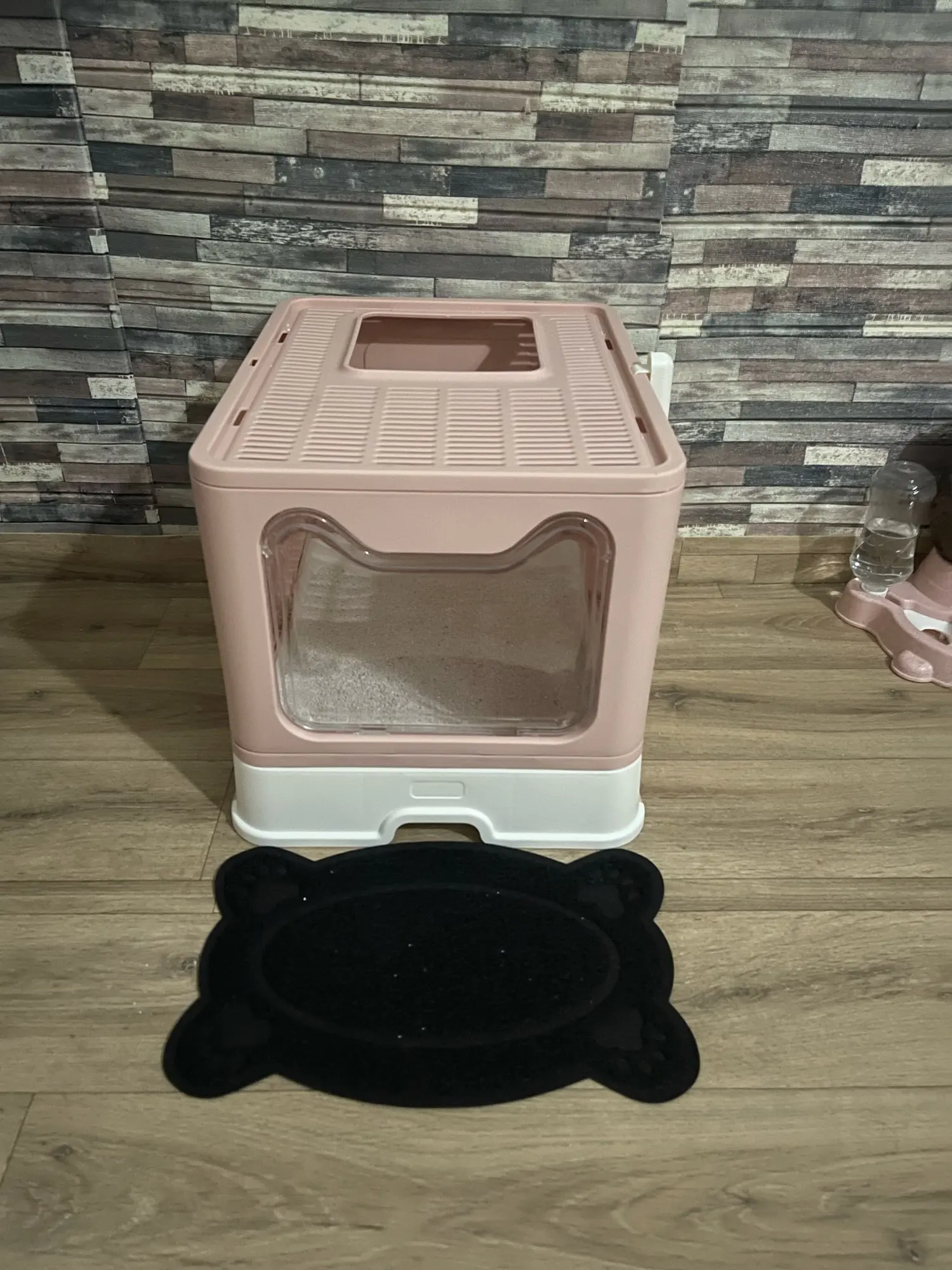 Caja de arena para gatos, sanitario para mascotas, con protección anti-salpicaduras, para perros y gatos, caja de plástico con cuchara para remover la arena, para el hogar