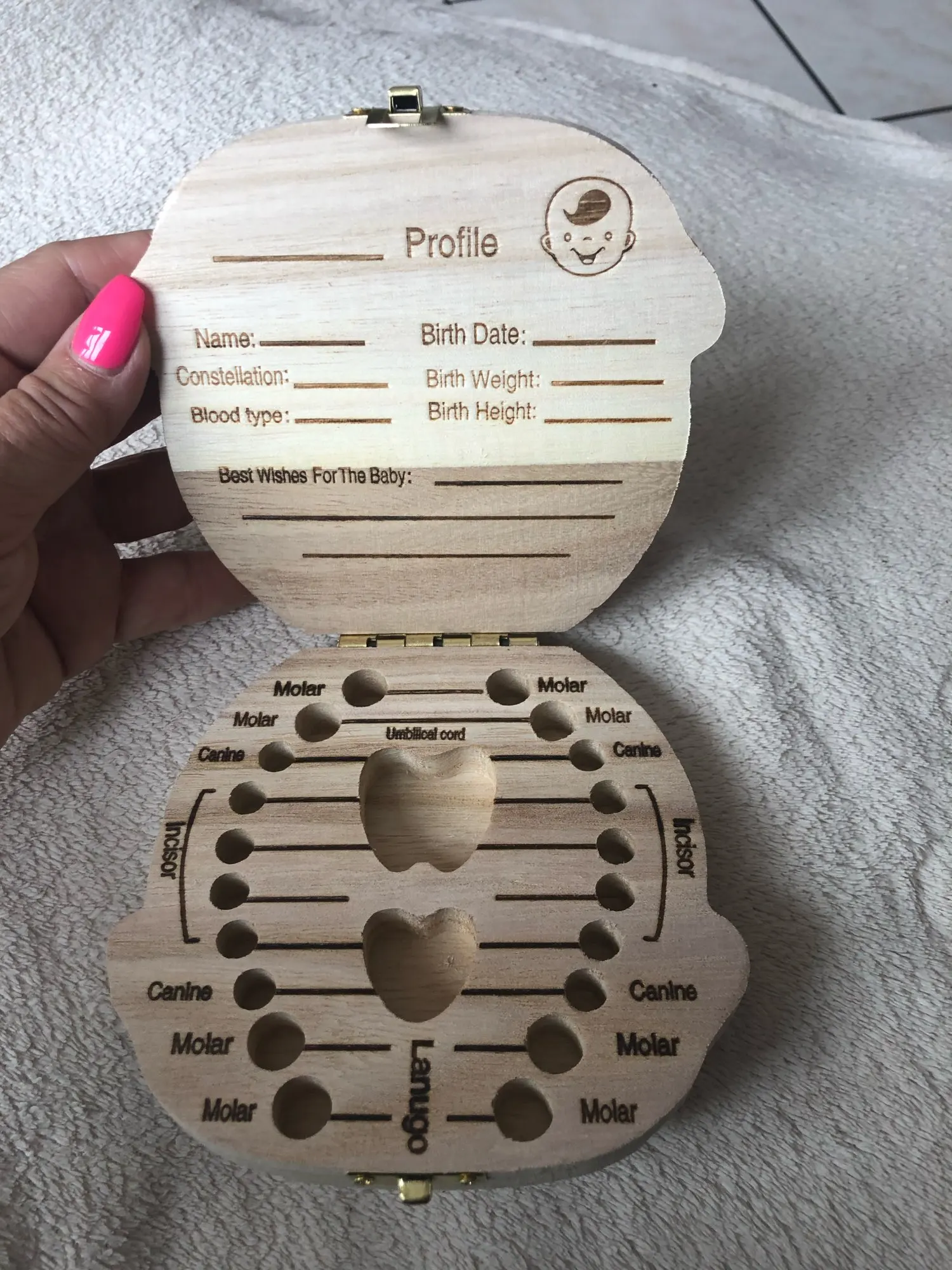 Caja de dientes de madera de bebé francés ruso inglés español organizador de almacenamiento de dientes de leche recoger dientes Umbilica guardar regalos