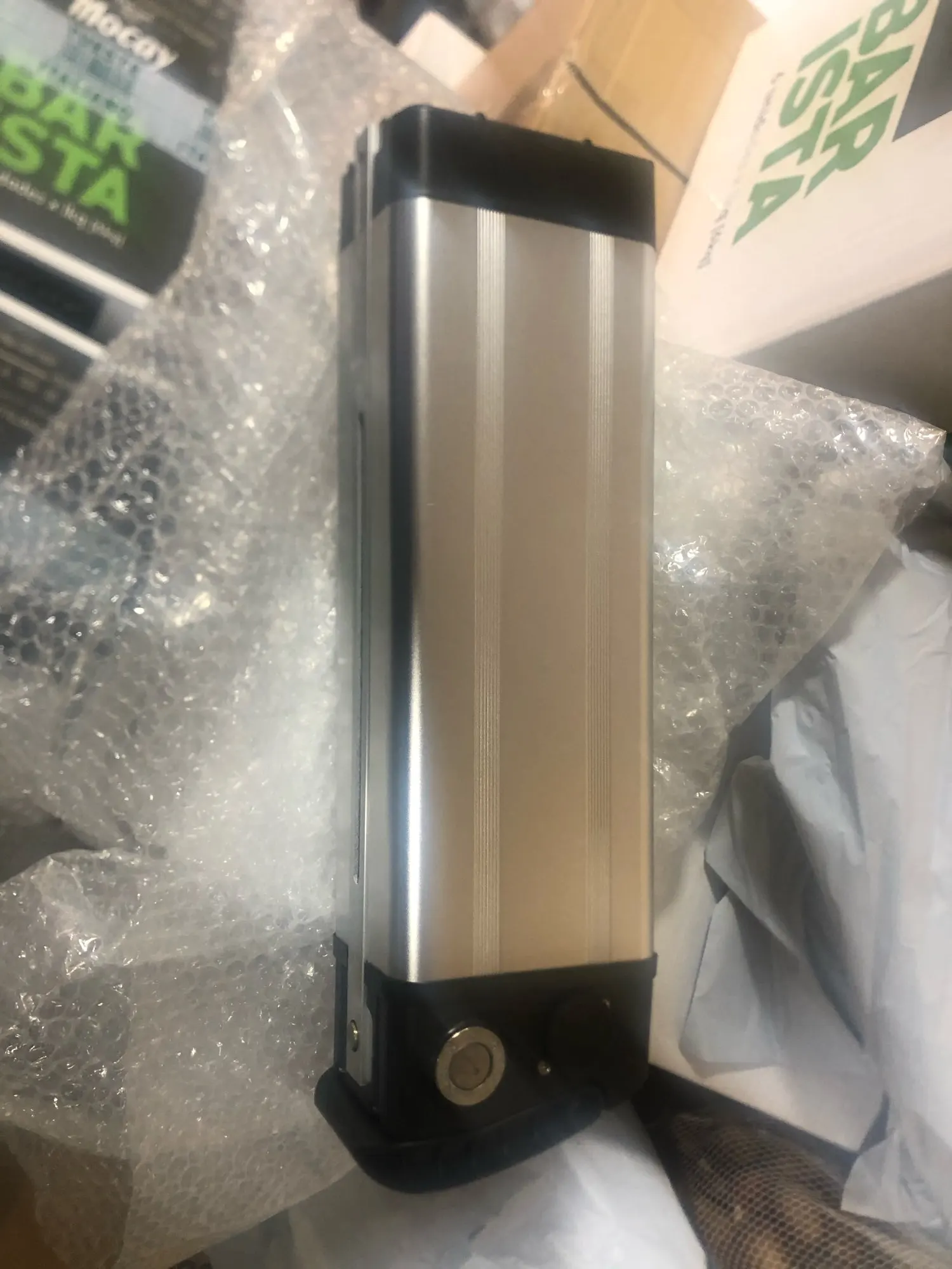 La caja está muy bien pero no viene ningún sistema de fijación a la bicicleta, no queda claro en anuncio este punto. Transporte muy rápido, bien.