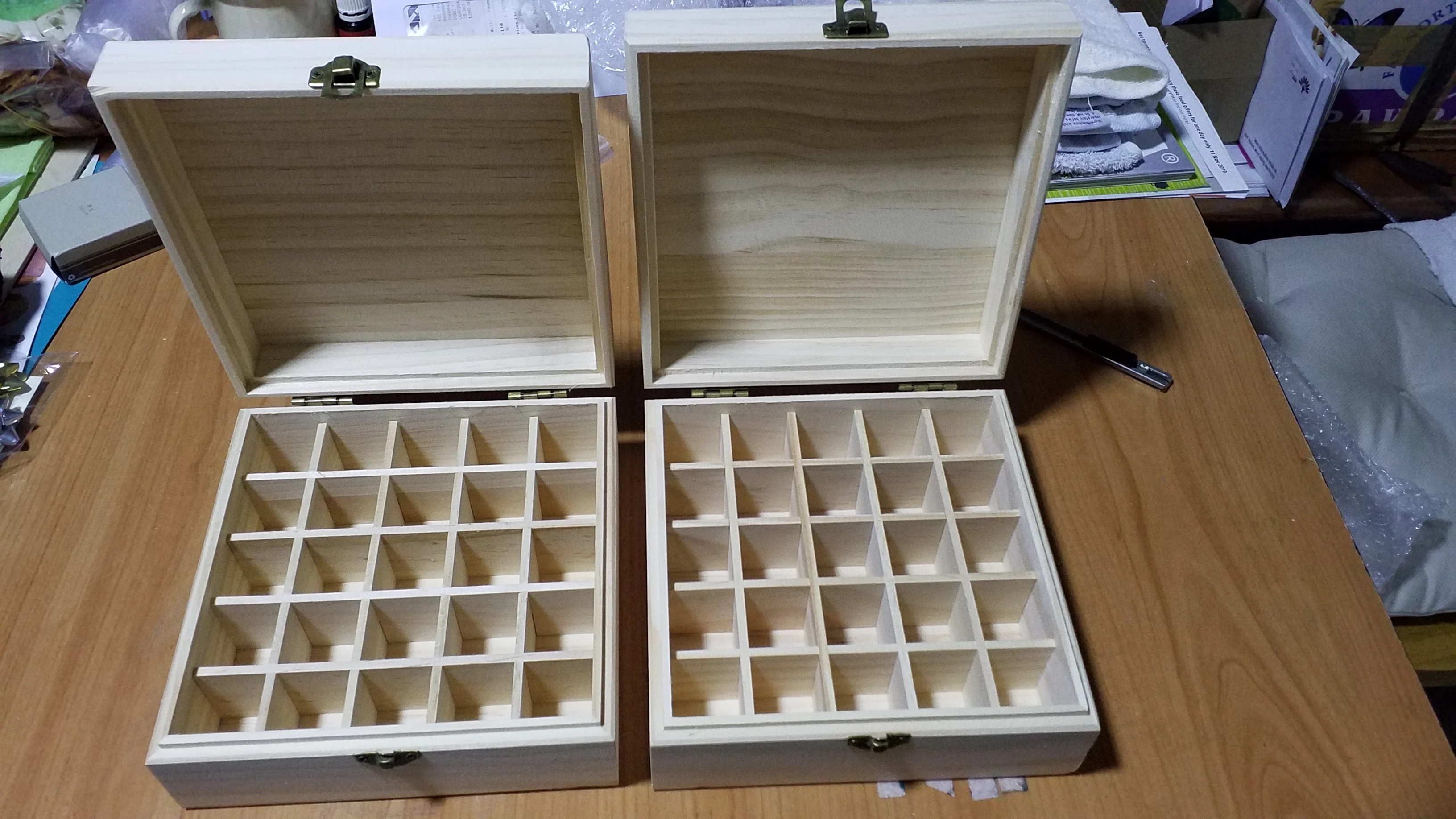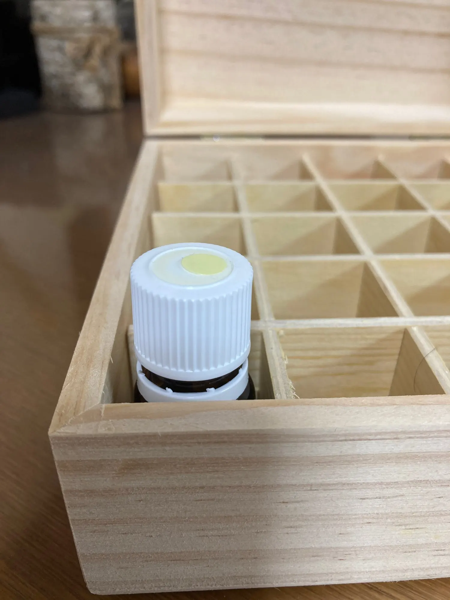 Caja de madera con 25 ranuras para aceites esenciales, frascos de aromaterapia de madera maciza, estuche protector organizador de 18,6x18,6x18,5 cm