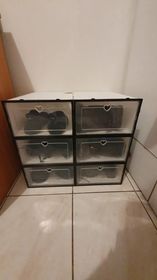 Caja de zapatos con tapa de 6 uds, caja de cajón transparente gruesa, caja de plastico para zapatos, caja apilable, organizador de zapatos, Zapatero de almacenamiento