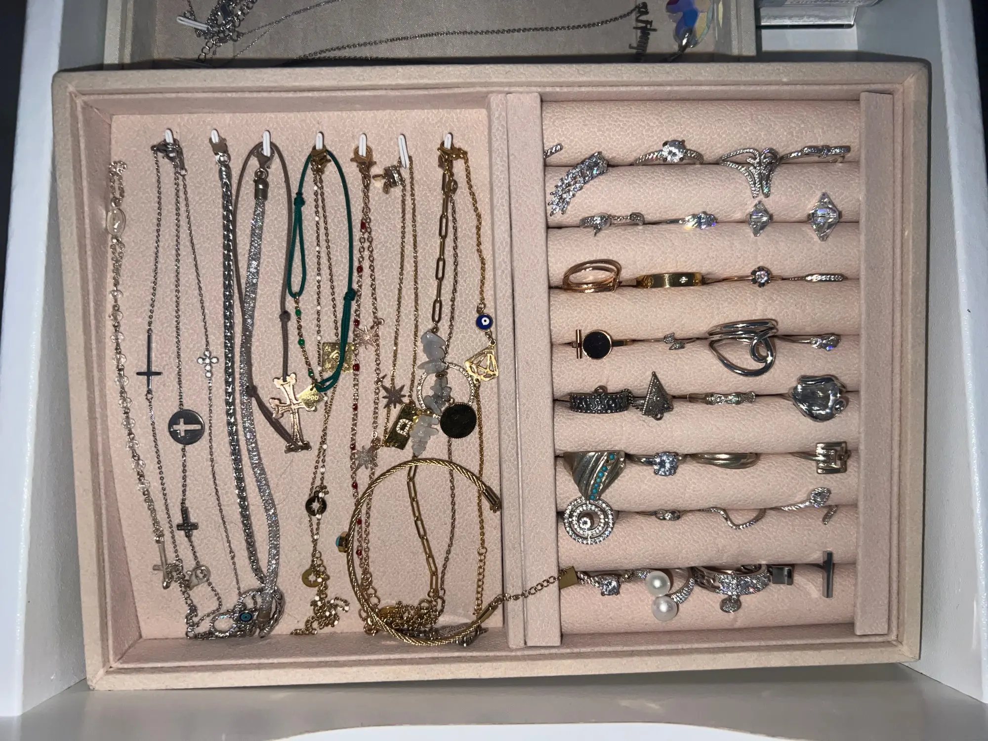 Caja organizadora de joyería portátil, soporte de bandeja, collar, pendientes, brazalete, caja de almacenamiento, escaparate, soporte de joyería