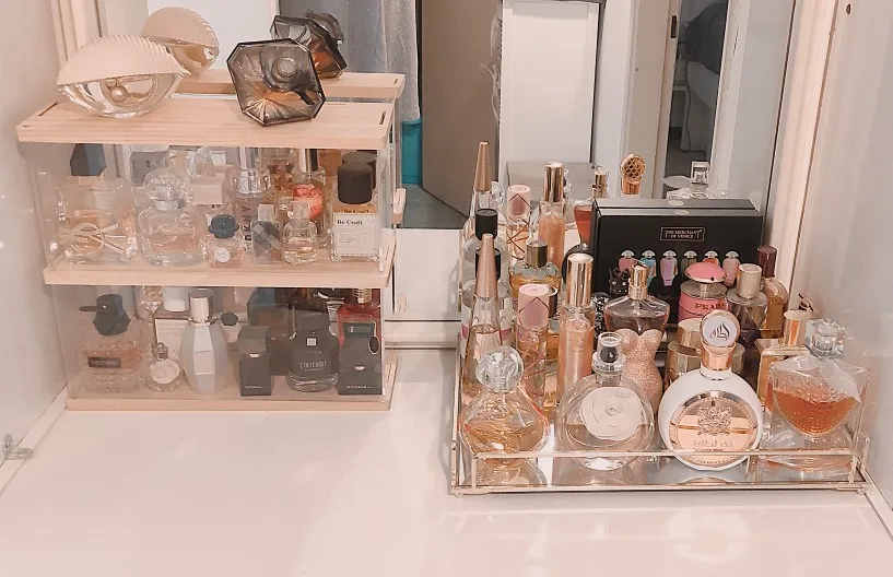 Caja para almacenaje de perfumes de gran capacidad, soporte de exhibición de 2/4 capas, caja de almacenamiento de artículos diversos, estantería de joyería