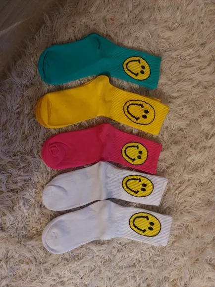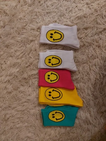 Calcetines de algodón con cara de sonrisa grande para mujer, calcetín, Color puro, creativo, 091402