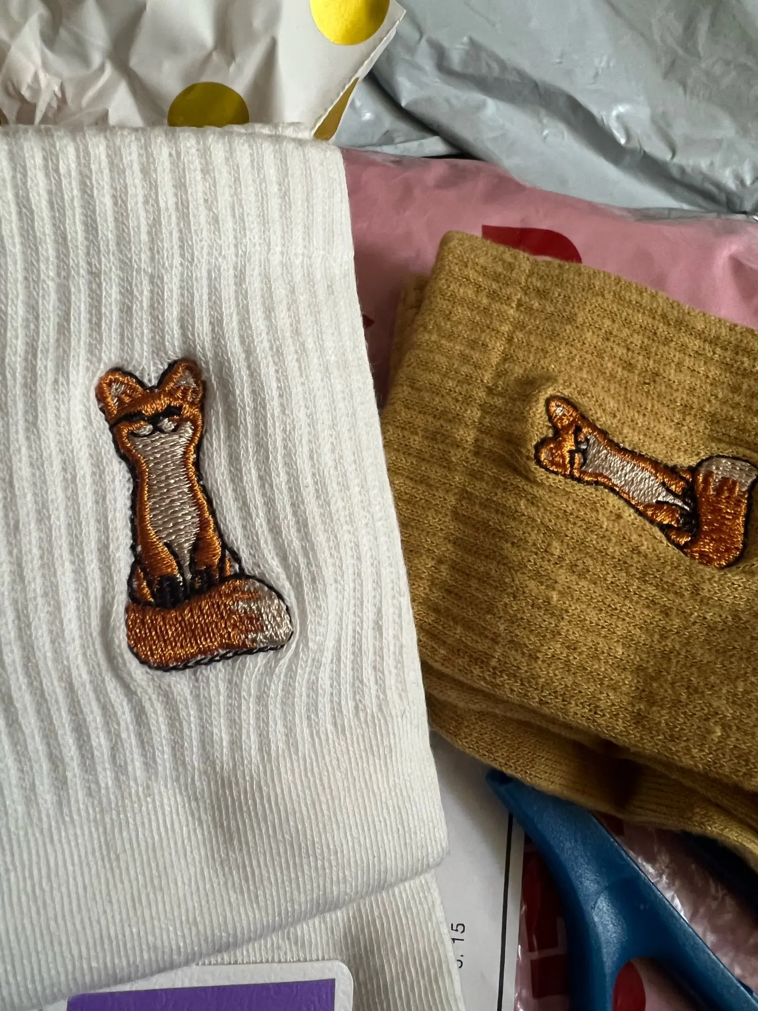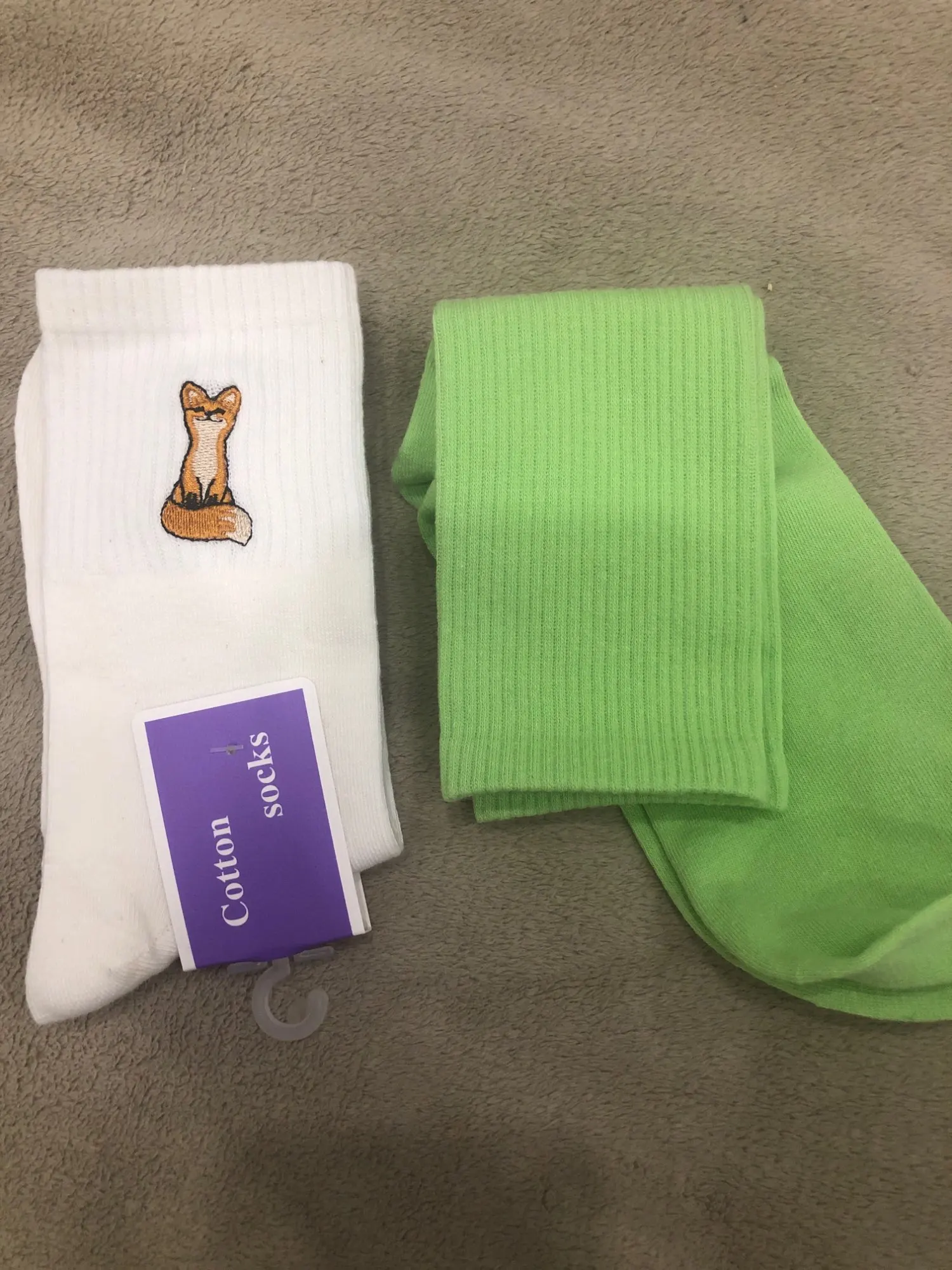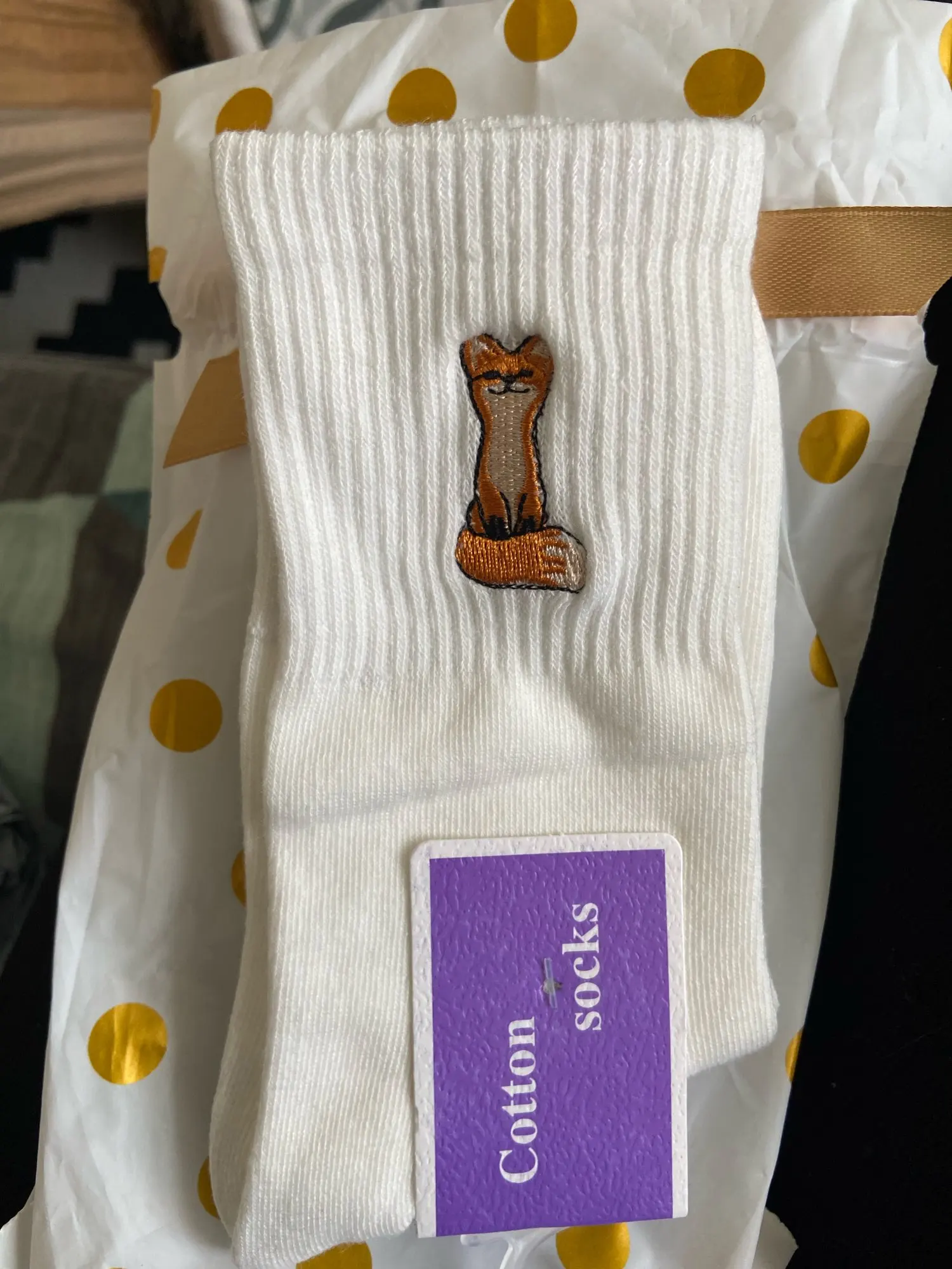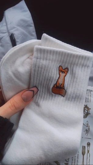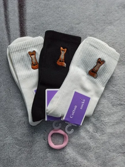 Calcetines de algodón con patrón bordado para mujer, medias informales con diseño divertido de zorro, Color sólido, blanco y negro, para Primavera, Otoño e Invierno