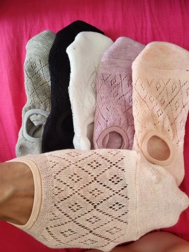 Calcetines invisibles antideslizantes de silicona para mujer, calcetines tobilleros de malla de Color sólido, calcetines invisibles, 5 pares