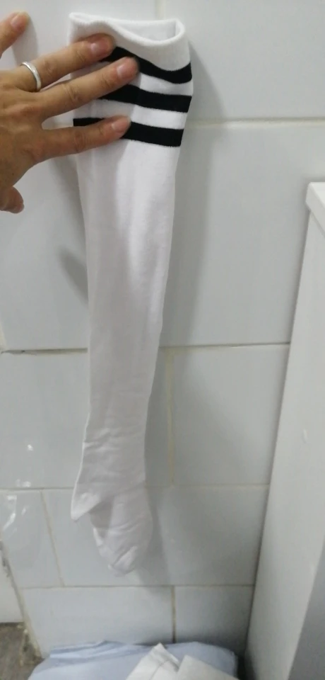 Calcetines largos de algodón antideslizantes con tres barras para mujer, medias largas hasta la rodilla, transpirables, hasta el muslo, 7 colores