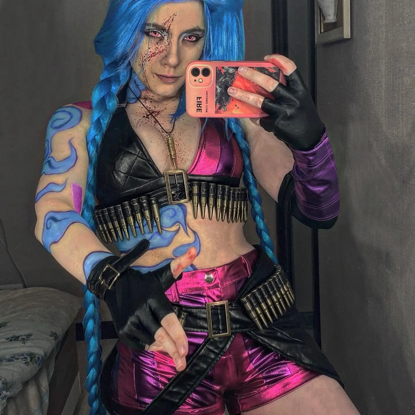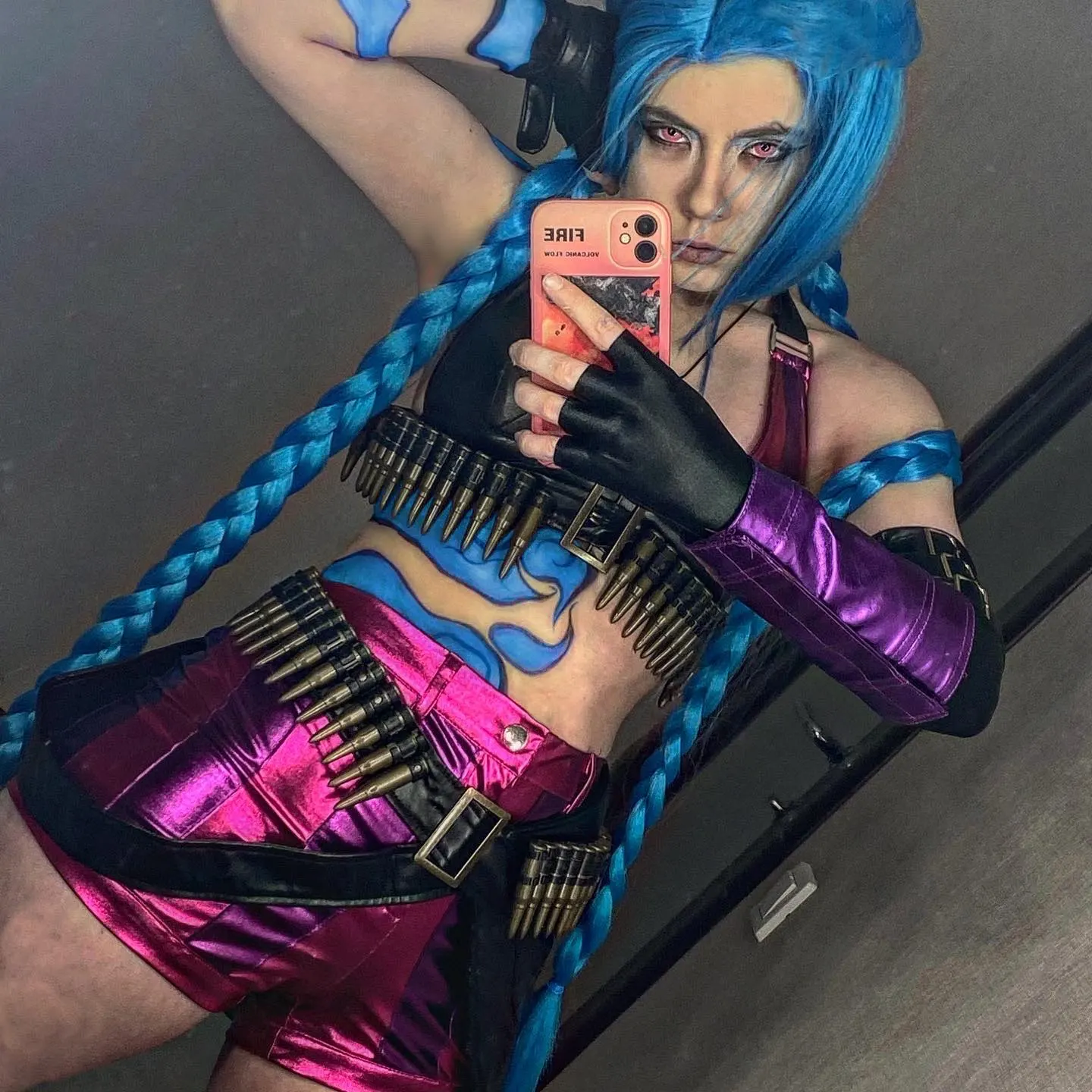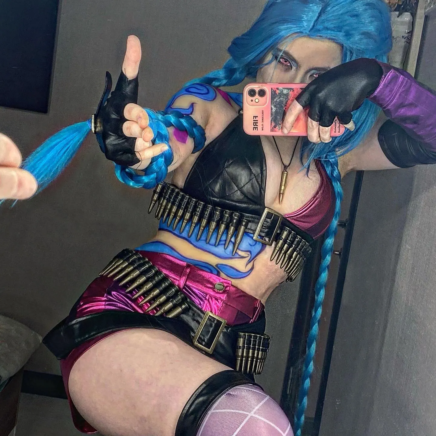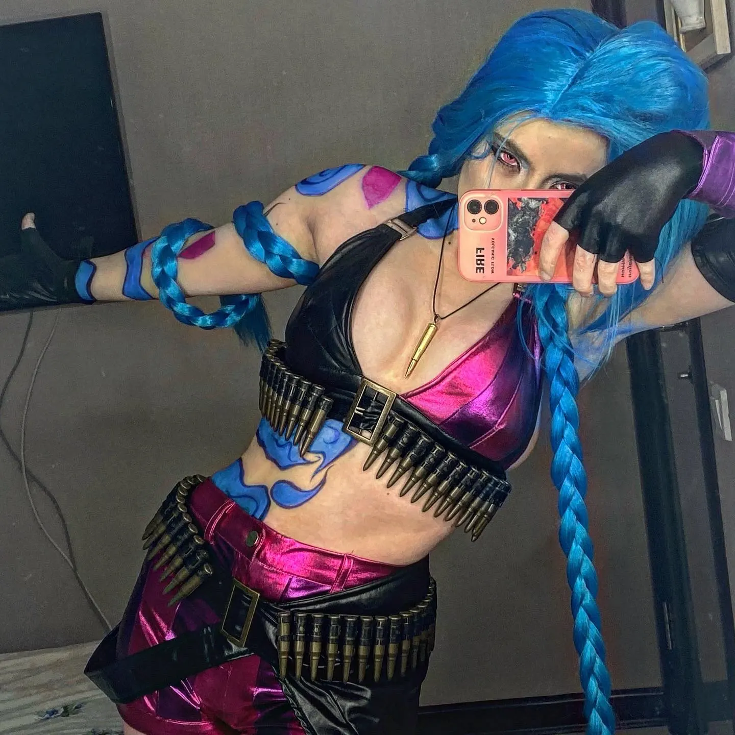 ¡Caliente! Disfraz de Cosplay de LoL crot Loli Jinx para mujer y niña, uniformes mágicos de piel, pelo azul, ropa de fiesta