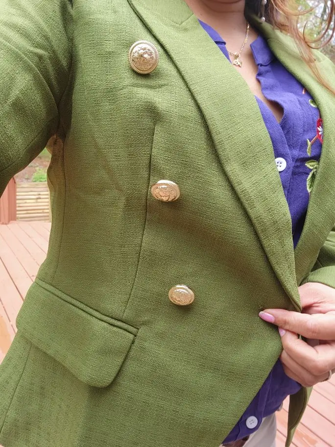 Calle clásico barroco diseñador chaqueta Blazer de las mujeres es de Metal botones de León doble Breasted chaqueta con relieve verde menta
