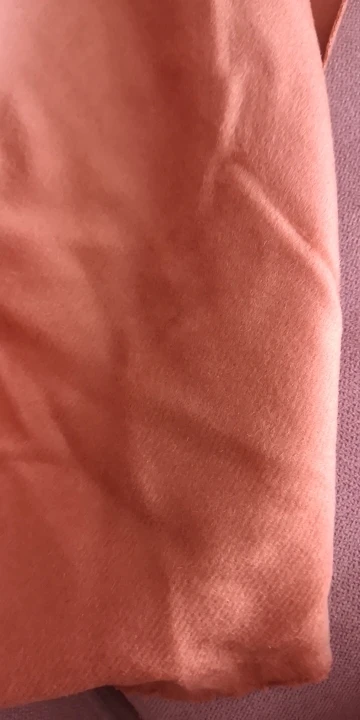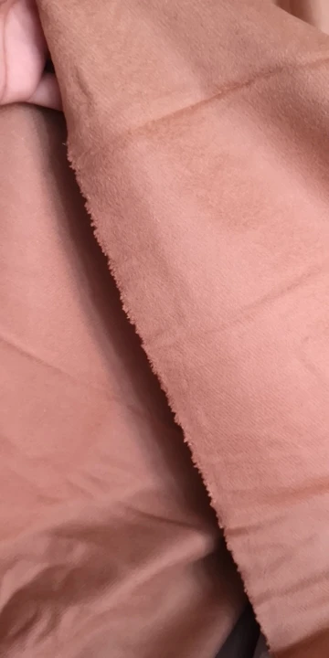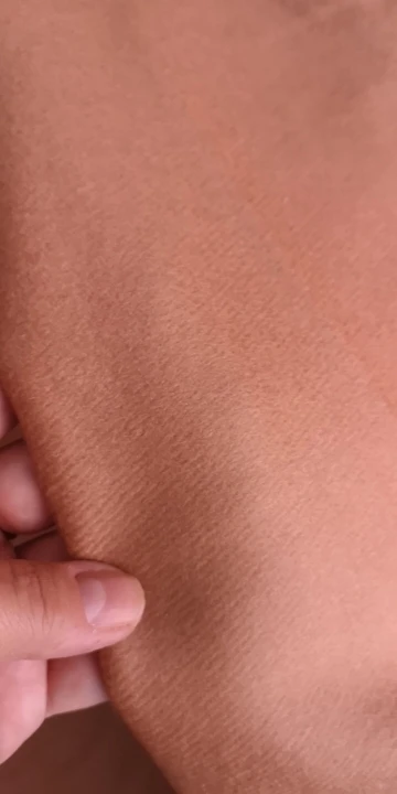 La tela tiene caída y consistencia. Por el derecho es de pelito fino. El color es como el color de la arena de la playa, precioso. Tiene un brillo muy bonito. En general, estoy muy contenta. La única pega, que viene con una manchita que tendré que esquivar al cortar los patrones...