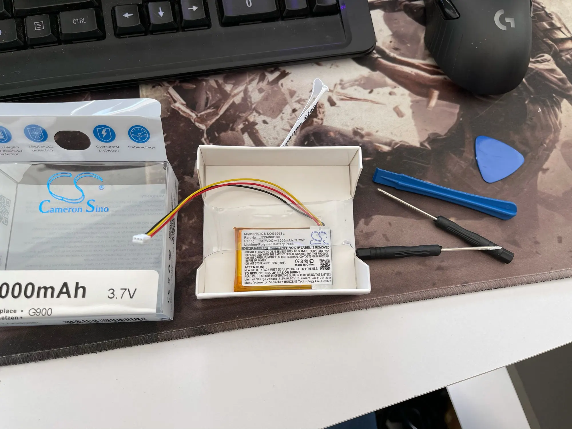 Cameron Sino-Batería de 1000mAh, 533-000130, para Logitech G403, G900,G703,G903