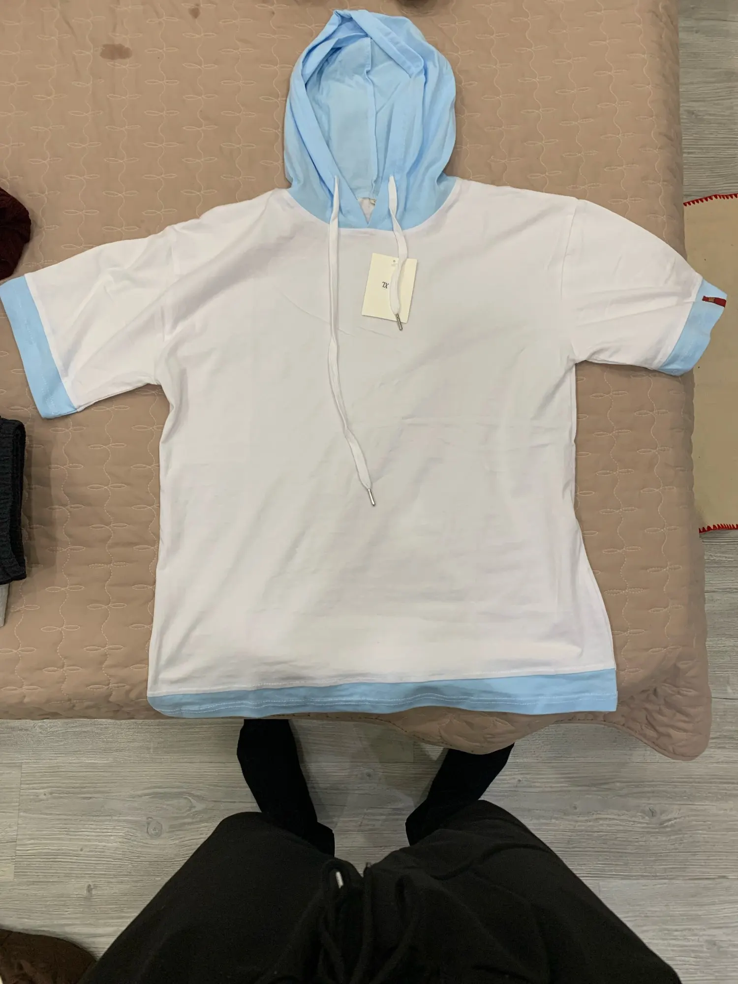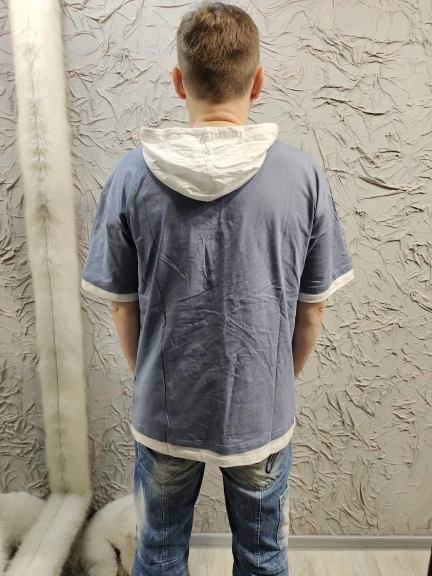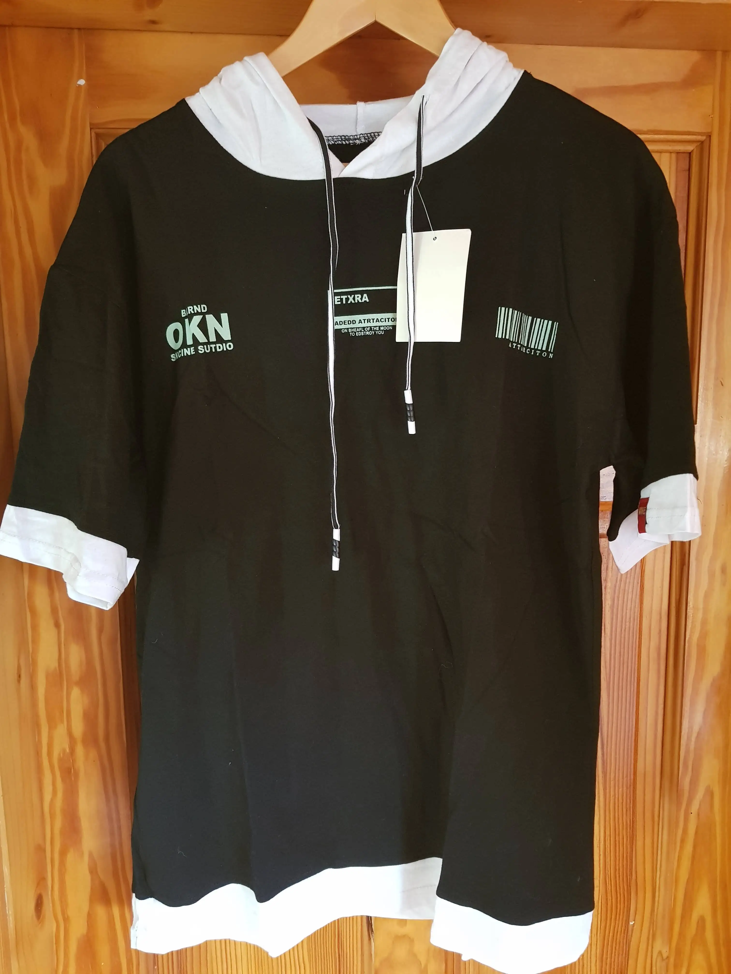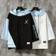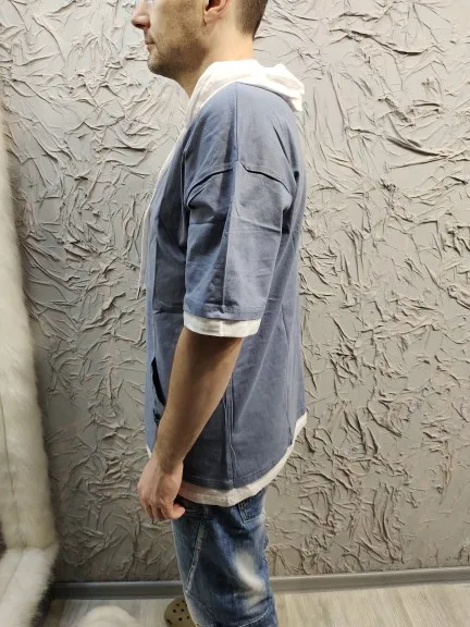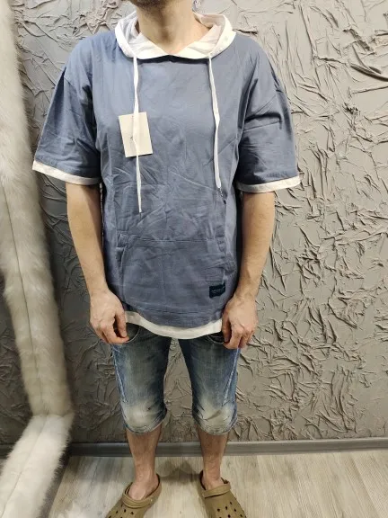 Camiseta de manga media para hombre, camiseta informal de algodón, Camiseta deportiva de retazos suelto con capucha, camiseta de calle alta para hombre 2022