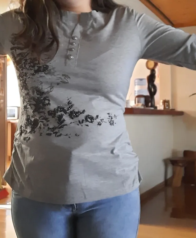 Hermosa, buena calidad, 1 mes y 1 día... Lo único que los botones no se abren, y quería para amamantar... Pero super
