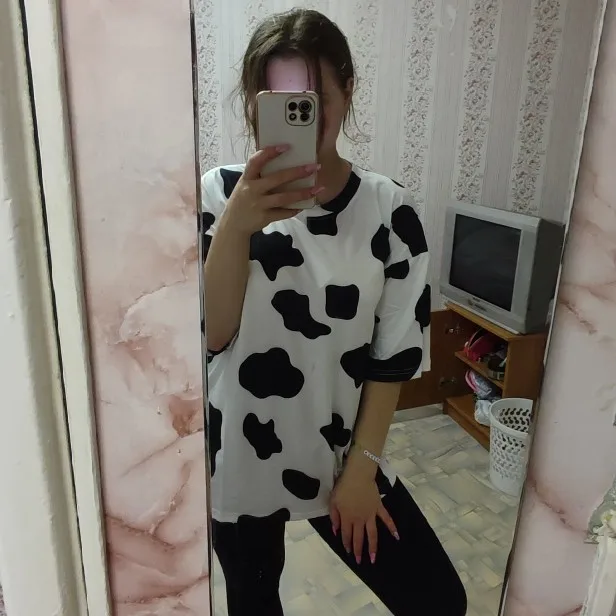 Camisetas con estampado de camuflaje de vaca para mujer, remera holgada de manga corta para mujer, ropa retro ins, Top estampado para mujer