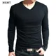 Camisetas de algodón de alta elasticidad para hombre, Camiseta ajustada con cuello de pico, camiseta de Fitness de manga larga para hombre, camiseta de talla asiática S-5XL 2022