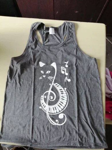 Musical Note Cat Print Tanks Tops