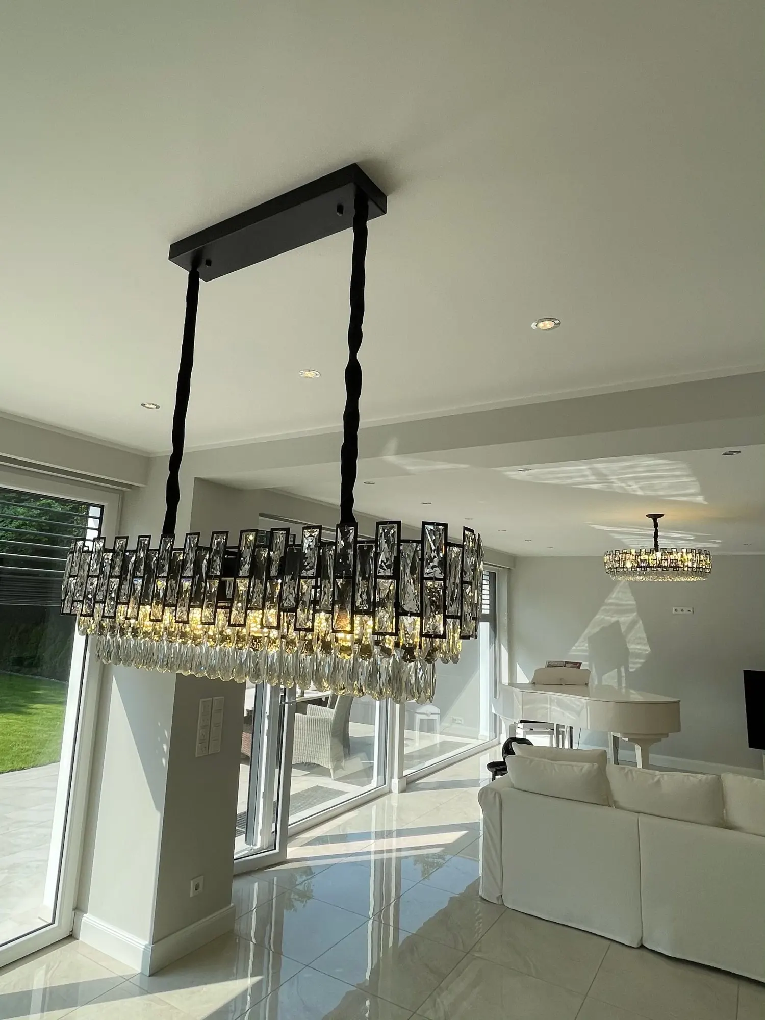 Candelabro de cristal brillante para sala de estar, decoración moderna para el hogar, iluminación de cocina, arañas led, lámparas de luz negra