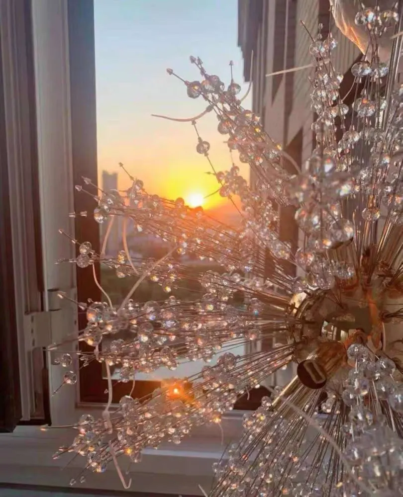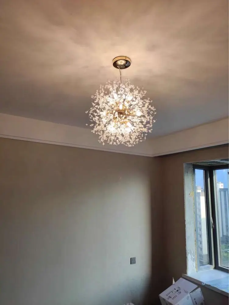Candelabro de cristal con forma de copo de nieve para sala de estar y cocina, globo rectangular, decoración nórdica, lámpara de techo led redonda