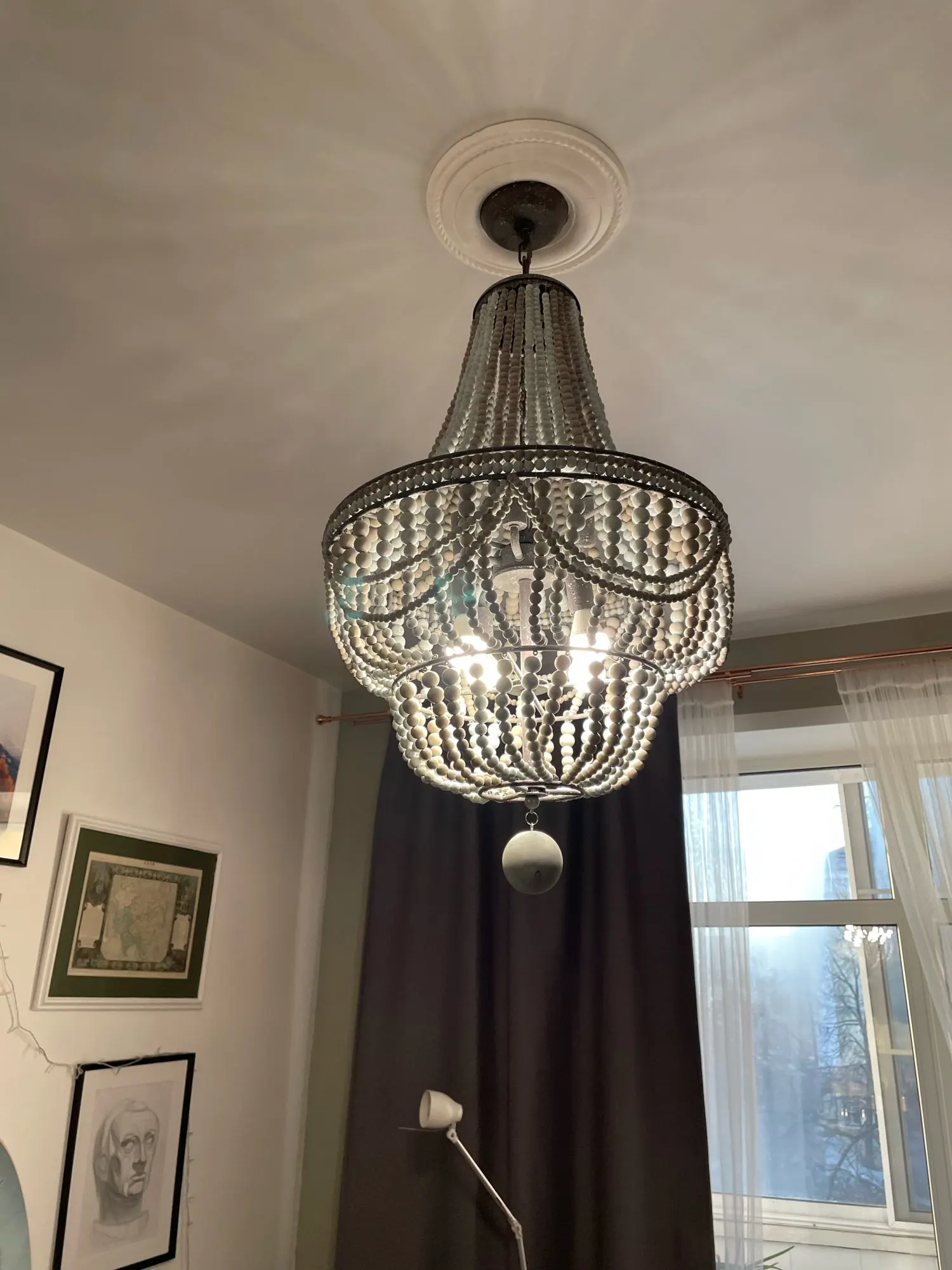 wood bead chandelier