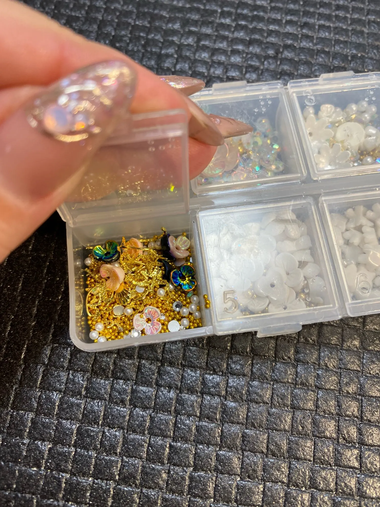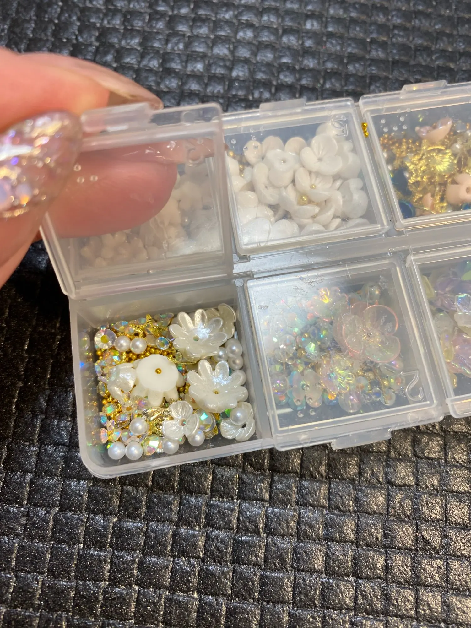 Carcasa artística de uñas joyería de flores ópalo perla japonesa remache diamante 3D arte de uñas encantos, flores de concha, joyería de aleación, diamantes de imitación,