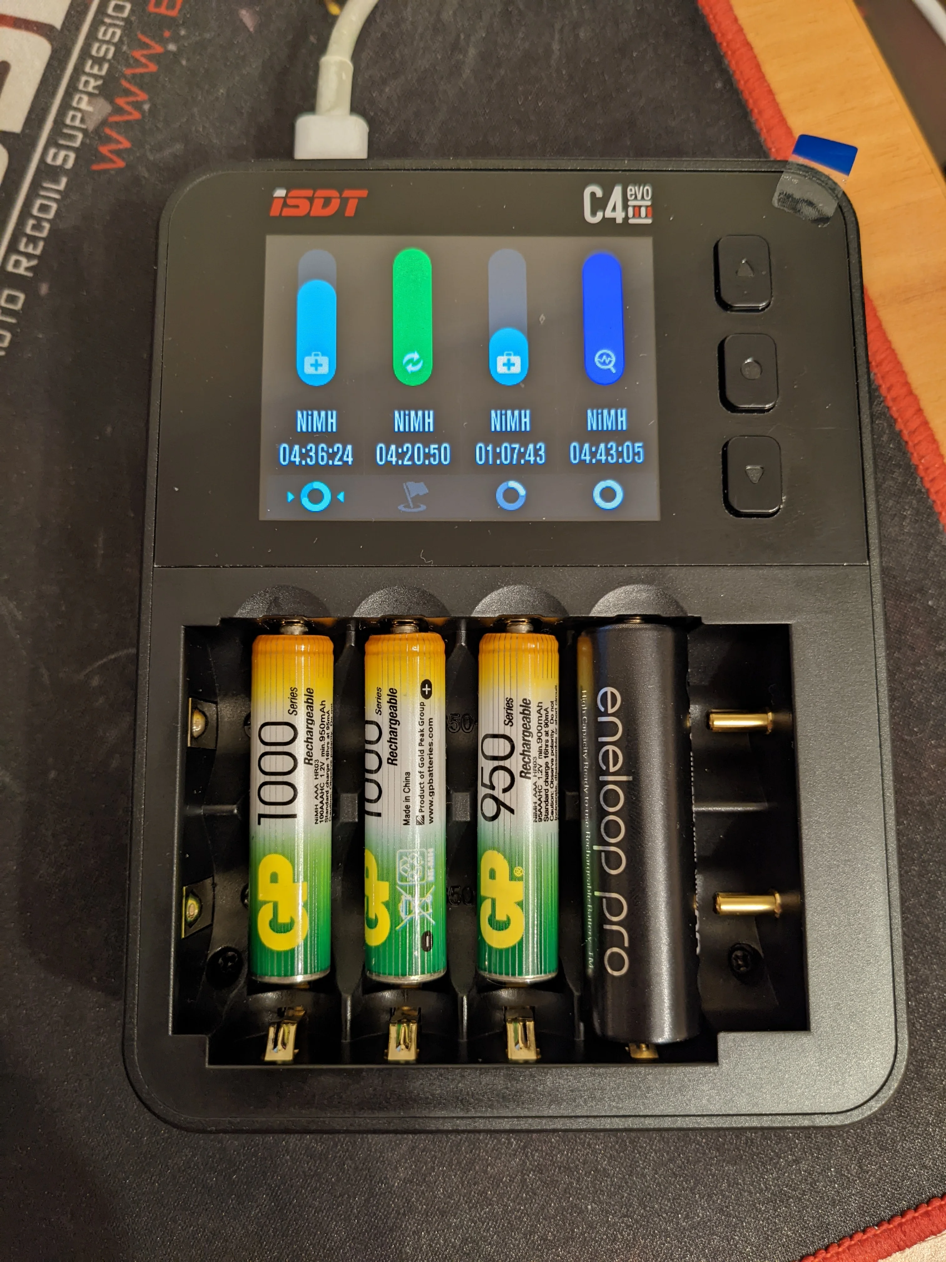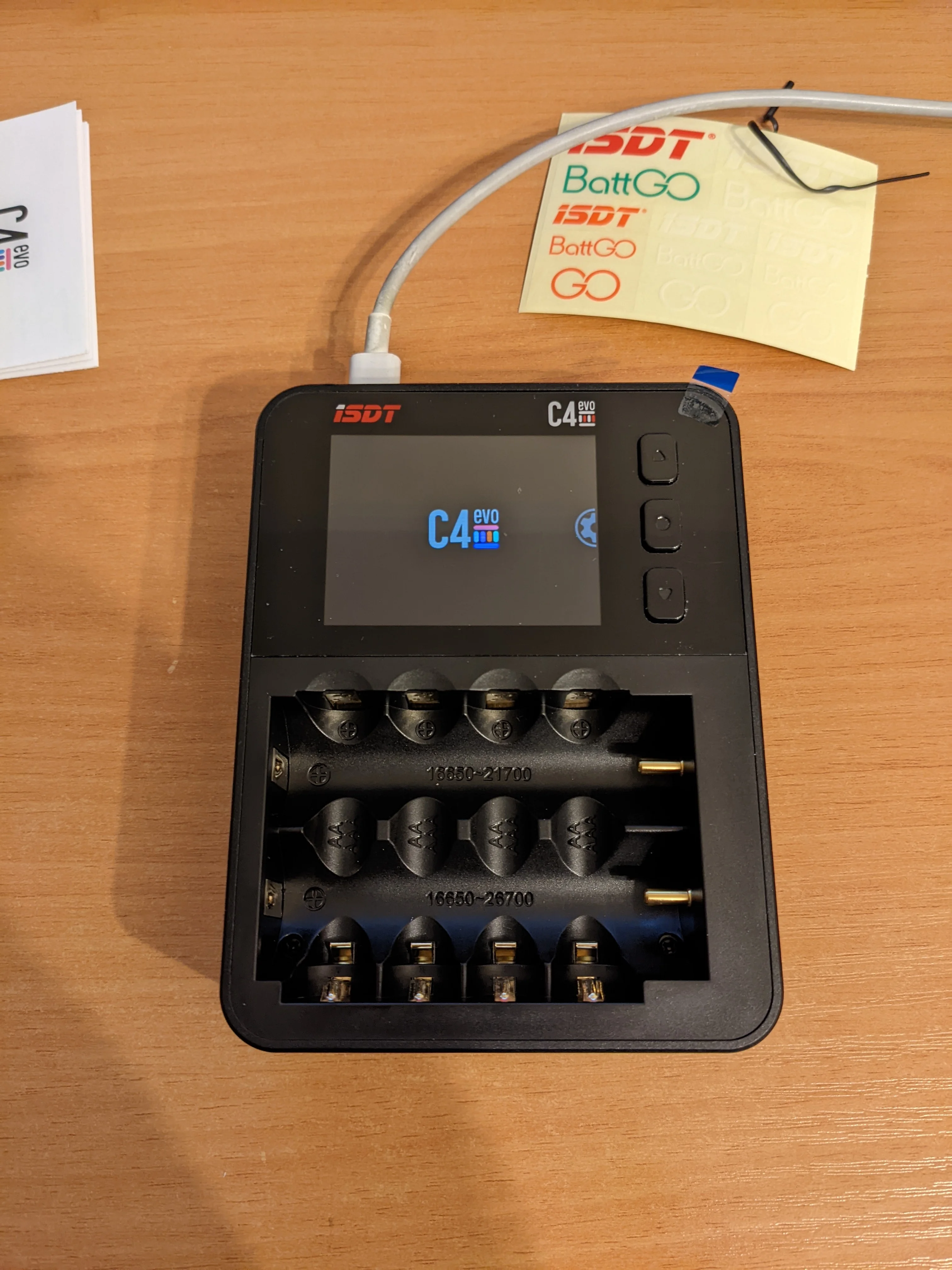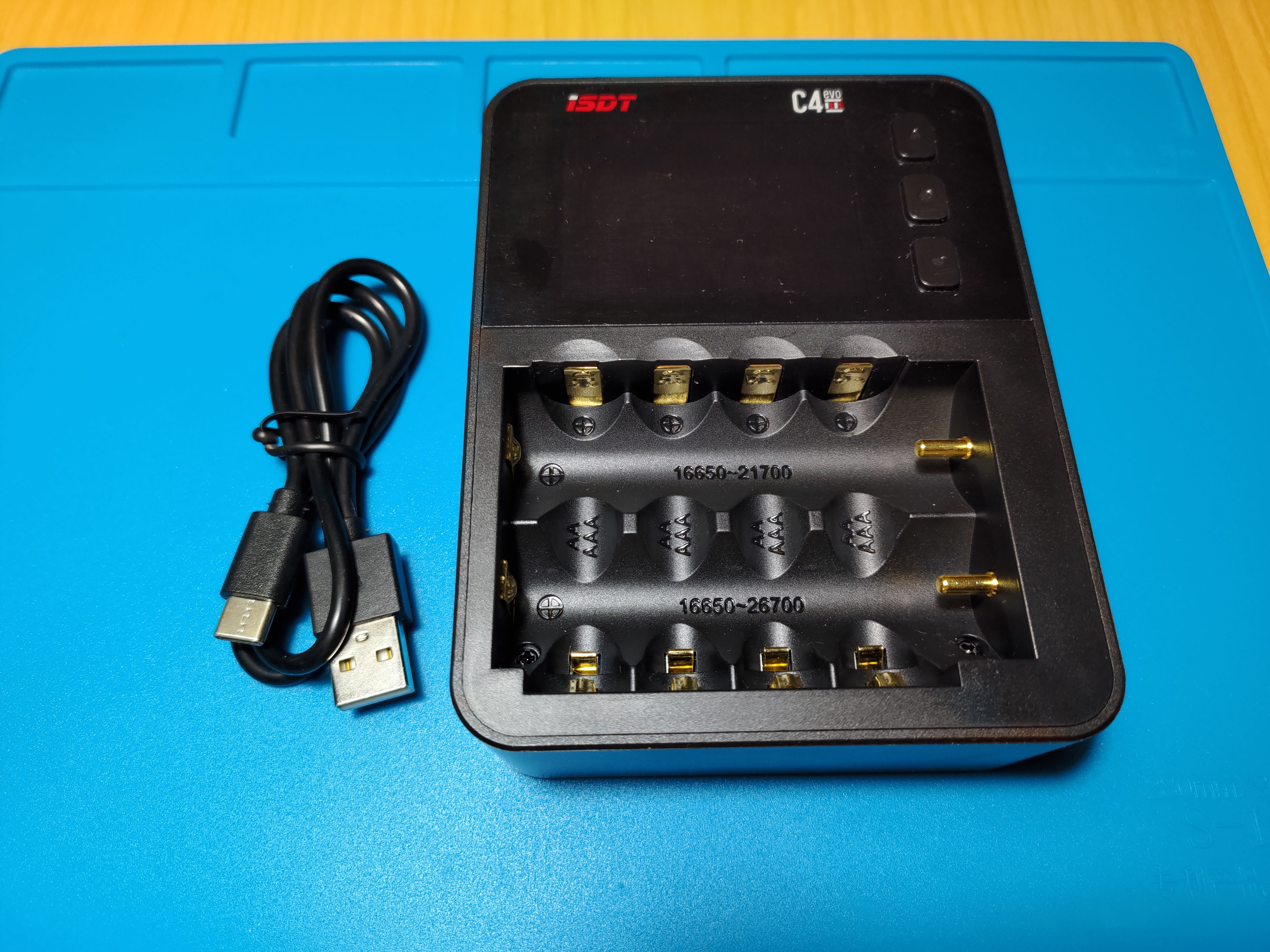 Cargador de batería inteligente ISDT C4 8A, dispositivo con salida USB para batería 18650 26650 AA AAA, modelos RC, Material de prevención de incendios