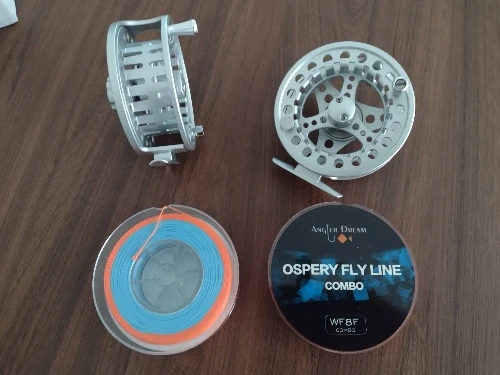 Carrete de pesca con mosca 1/2, 3/4, 5/6, 7/8, WT, con línea Combo, cenador grande, aluminio, Mosca, carrete de pesca, amarillo y azul