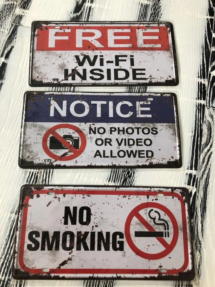 Cartel de hojalata Vintage para decoración de pared de hogar y bares, señal de advertencia con WiFI, cartel de Arte de Metal de 30x15 CM