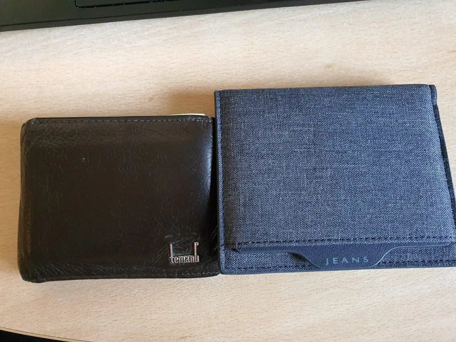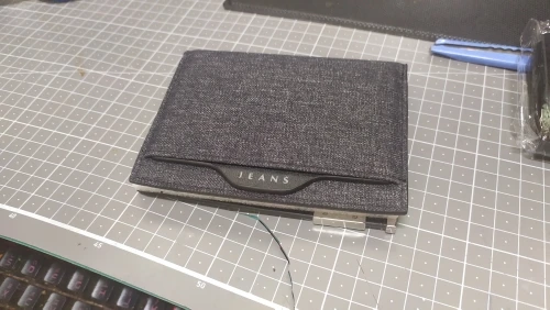 Cartera ultradelgada de tela vaquera para hombre, Mini billetera de lona vertical corta con clip de identificación, portatarjetas