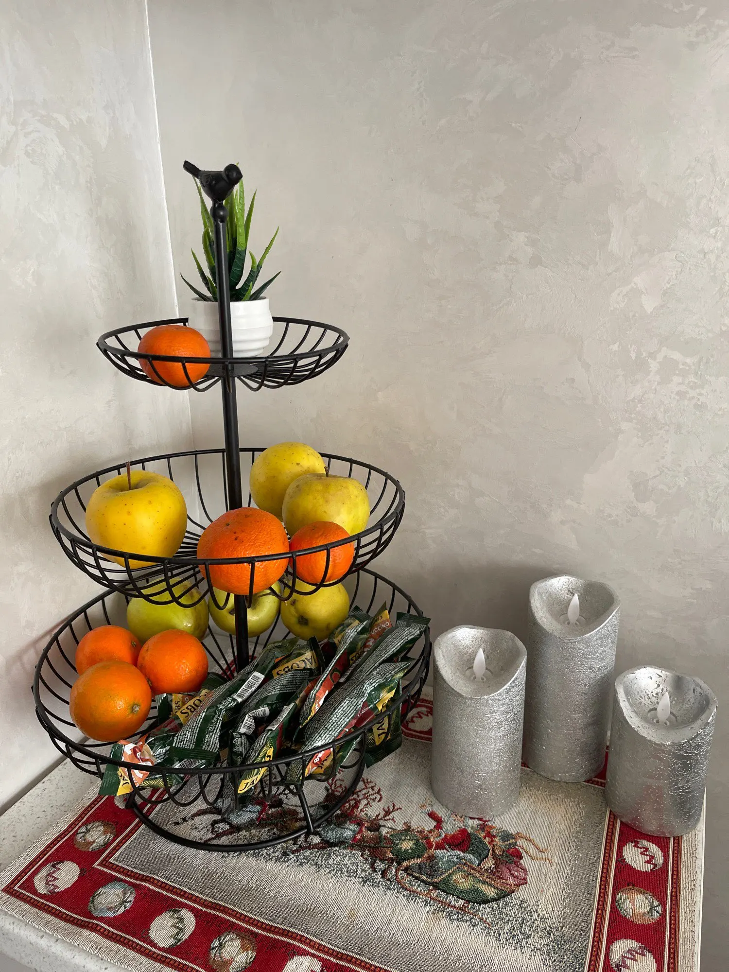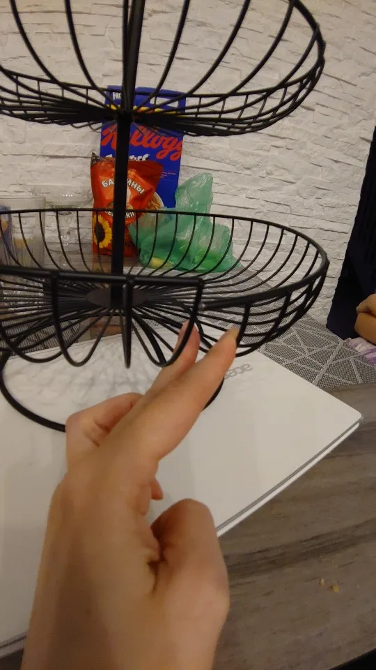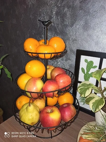 Casa de 3 capas placa de la fruta de la encimera de cesta de fruta de metal negro estilo retro bandeja de almacenamiento cesta WF1020