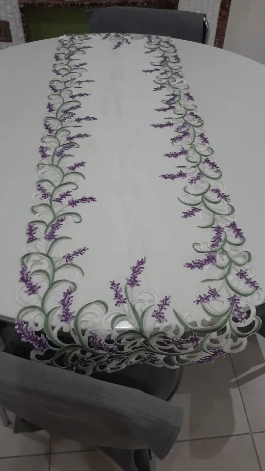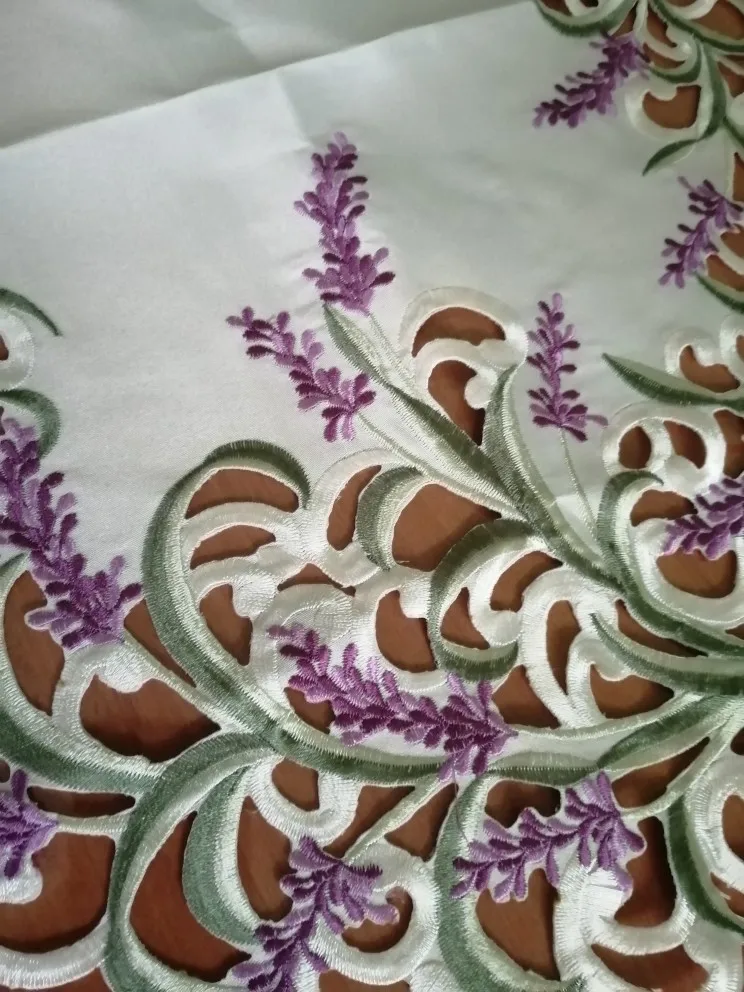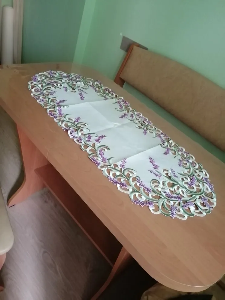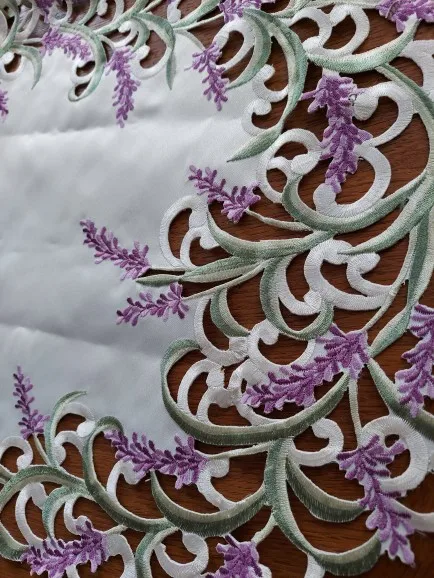 Casa de Color Beige satín hecho a mano Cutwork bordado armario de pie para televisión creativo cubierta lavanda Lila Oval Mesa Runner