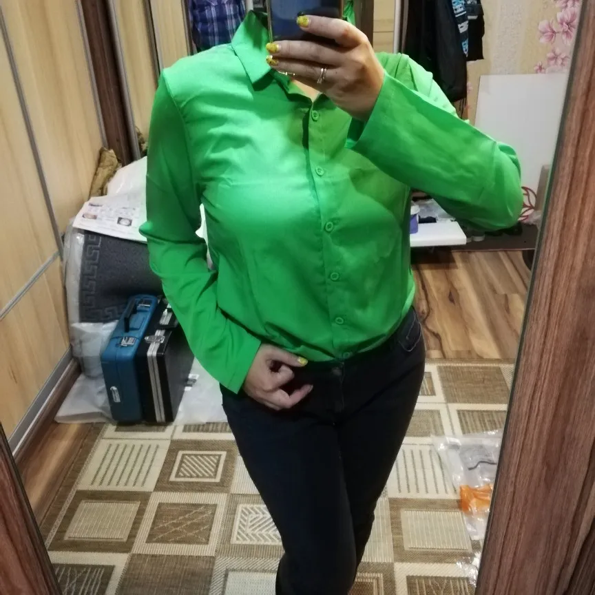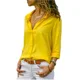Casual blusa de las mujeres de verano de manga larga giro-abajo Collar de camisa abierta paquete cadera larga de Color sólido blusa Top de gasa de verano S-5XL