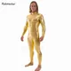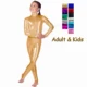 Catsuit de LICRA dorada para adultos, mono Sexy con cremallera frontal, brillante, metálico, Zentai, LICRA