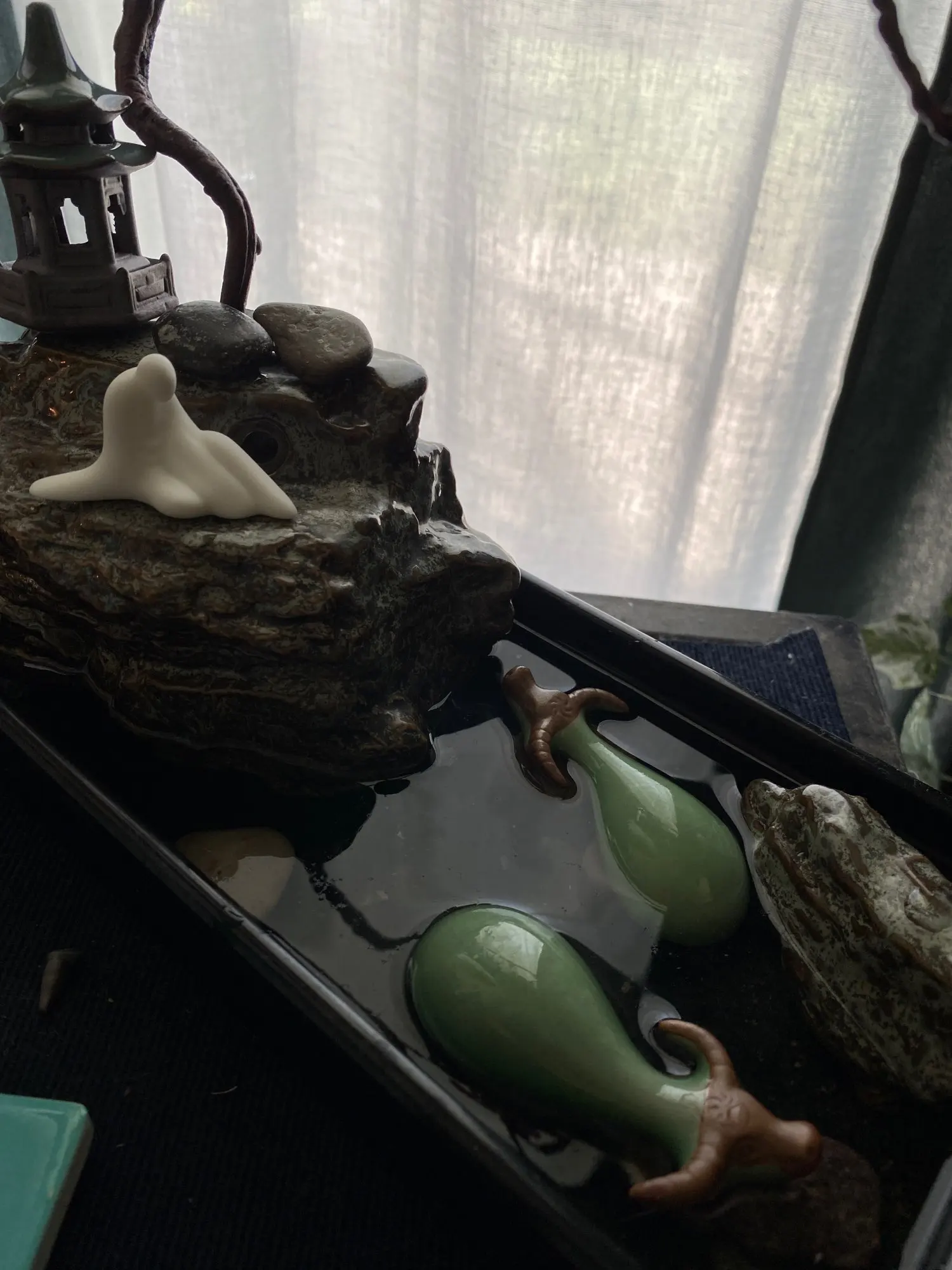 Celadon-Mini ganado de té para mascotas, Arte Creativo de vaca de buena suerte y artesanía, artículos de decoración, juego de té