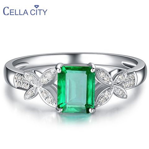 Cellacity-Anillo de plata 925 con gema de Esmeralda rectangular, joyería elegante de plata para mujer, ajuste de tamaño, regalo de fiesta al por mayor
