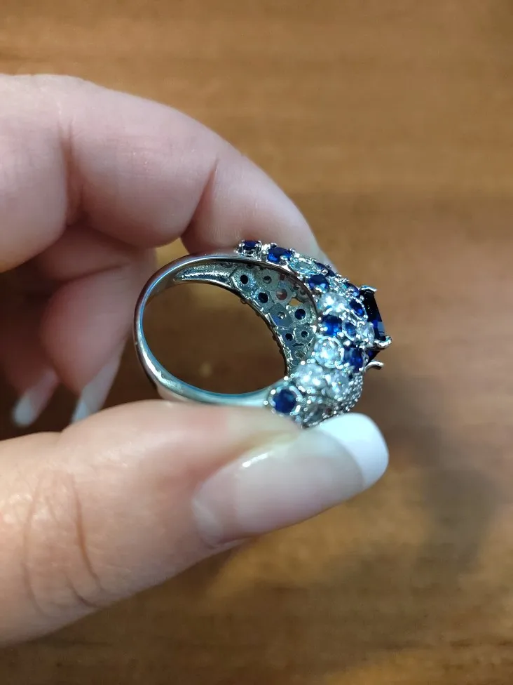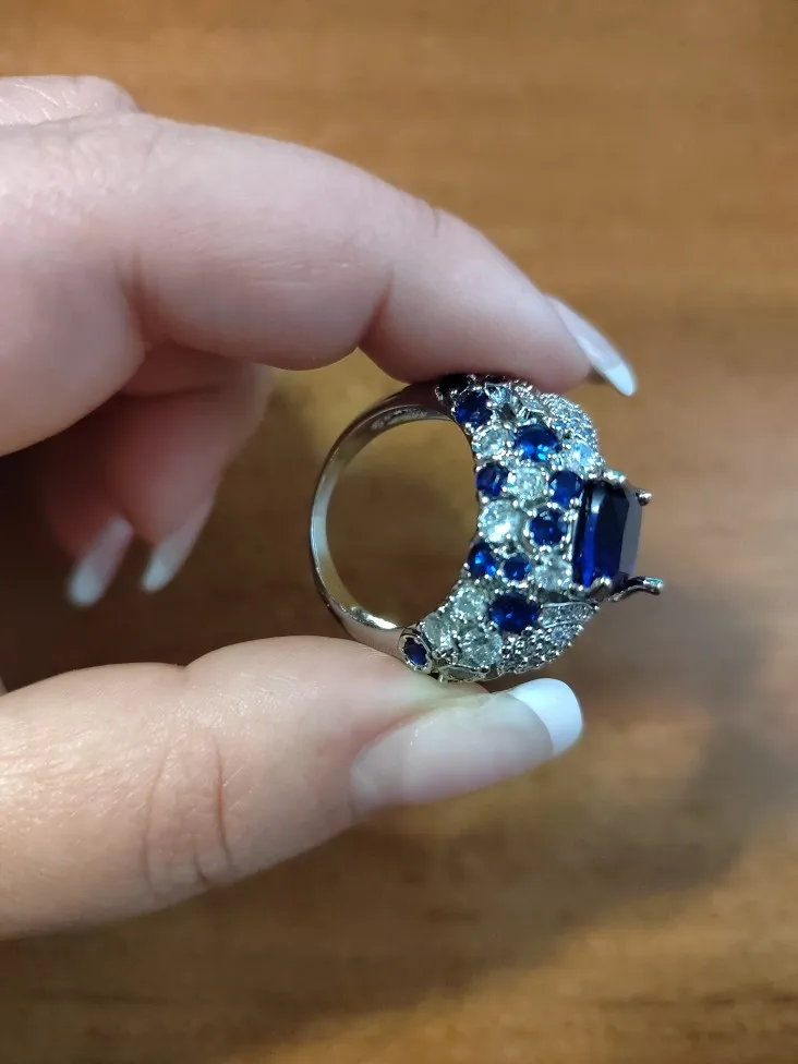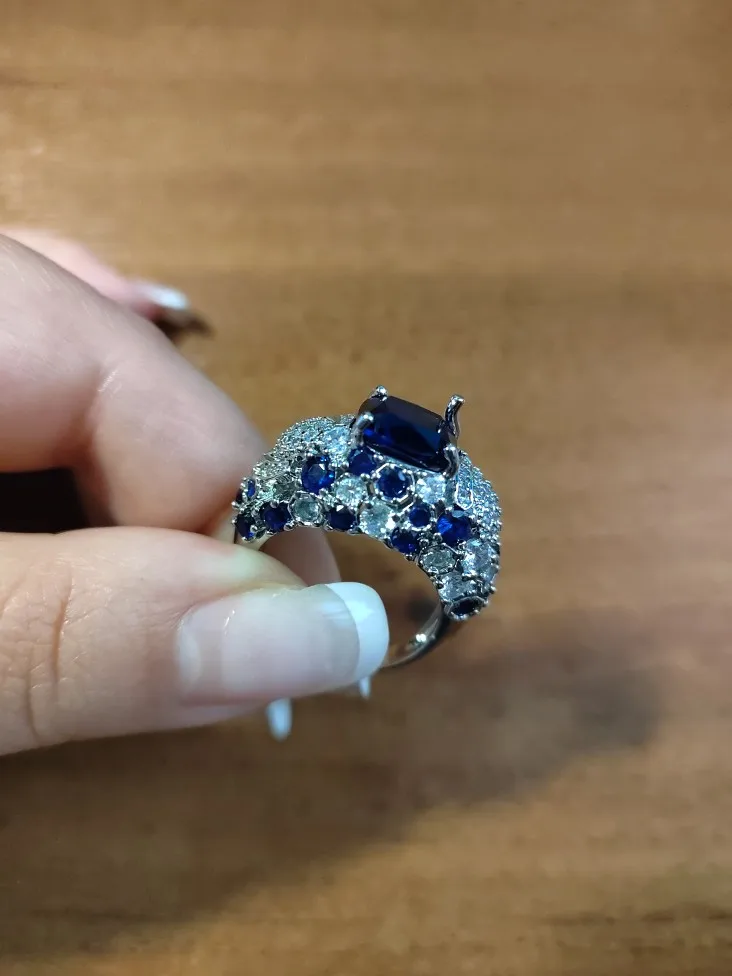 Cellacity clásico anillo de plata 925 para el encanto de las mujeres con azul Oval piedras preciosas de zafiro Fingle bien joyería venta al por mayor tamaño 6-10