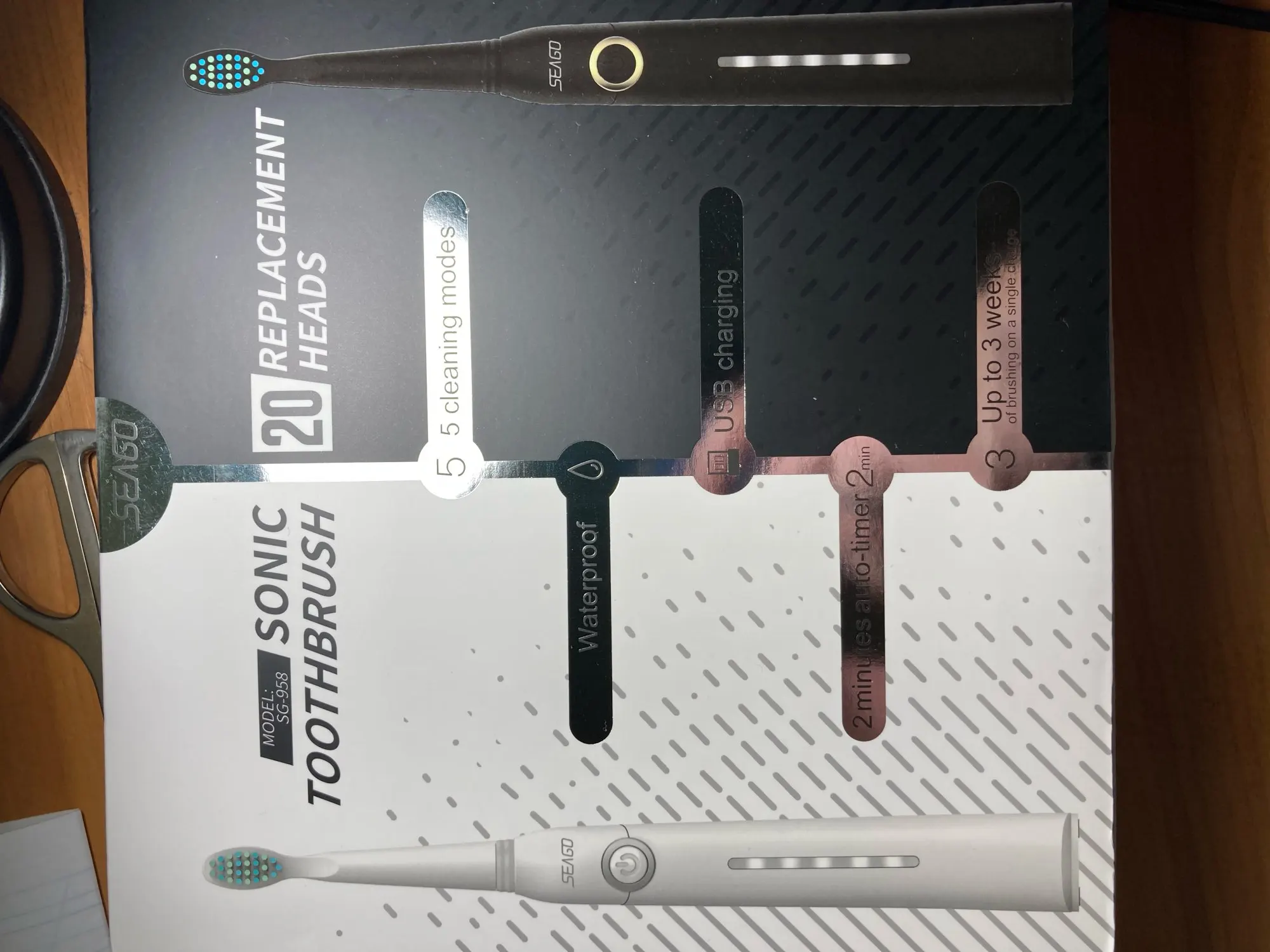 Cepillo de dientes eléctrico SEAGO Sonic para adultos, cepillo temporizador, cepillos eléctricos recargables USB para dientes con 3 piezas de cabezal de cepillo de repuesto sd958