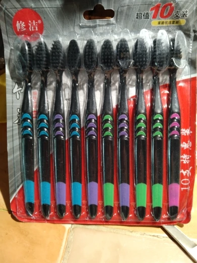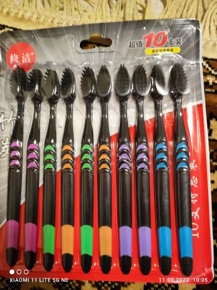 Cepillo de dientes Personal de carbón de bambú ambiental, cerdas suaves y medianas de bajo carbono para la salud bucal, mango de madera, 1/10 Uds.