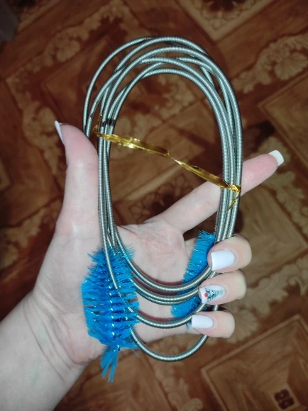 muy buen material, el resorte es suave no presenta tanta resistencia pero regresa de inmediato a su estado rígido el cepillo es suave pero de buen tamaño. me gustó mucho el material, vale la pena comprarlo, falta probarlo.