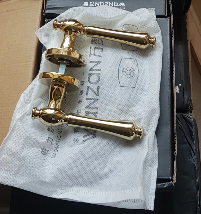 Cerradura de puerta de estilo americano, manija de Puerta del dormitorio Interior, núcleo de cobre puro, oro PVD, magnética